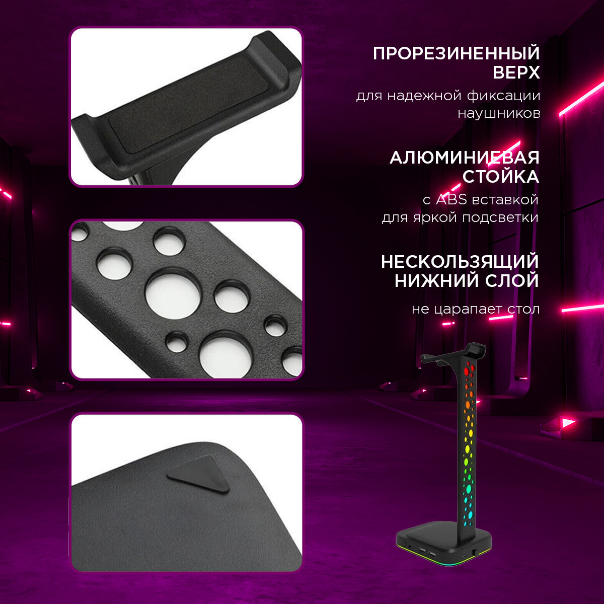Подставка для наушников и гарнитуры Q7 с подсветкой и USB 1 150 ₽