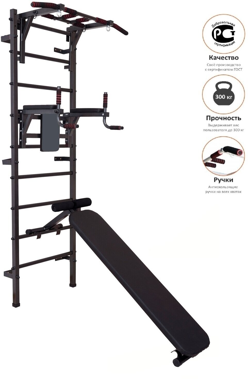 Отзывы на Усиленная шведская стена + турник три хвата + брусья + скамья (до 250 кг) RP
