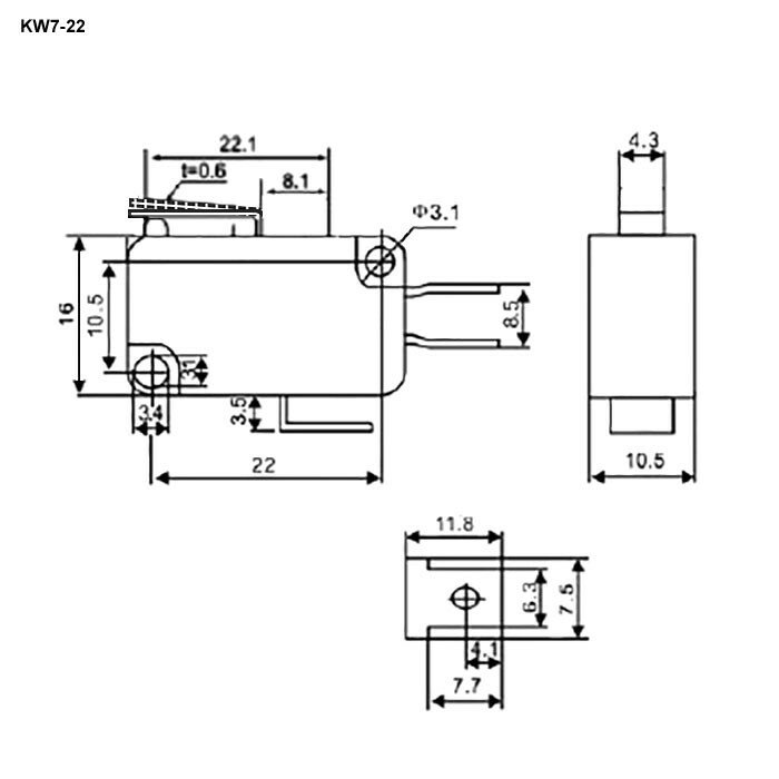 KW7-22 Микропереключатель KW7 с укороченной планкой информация: