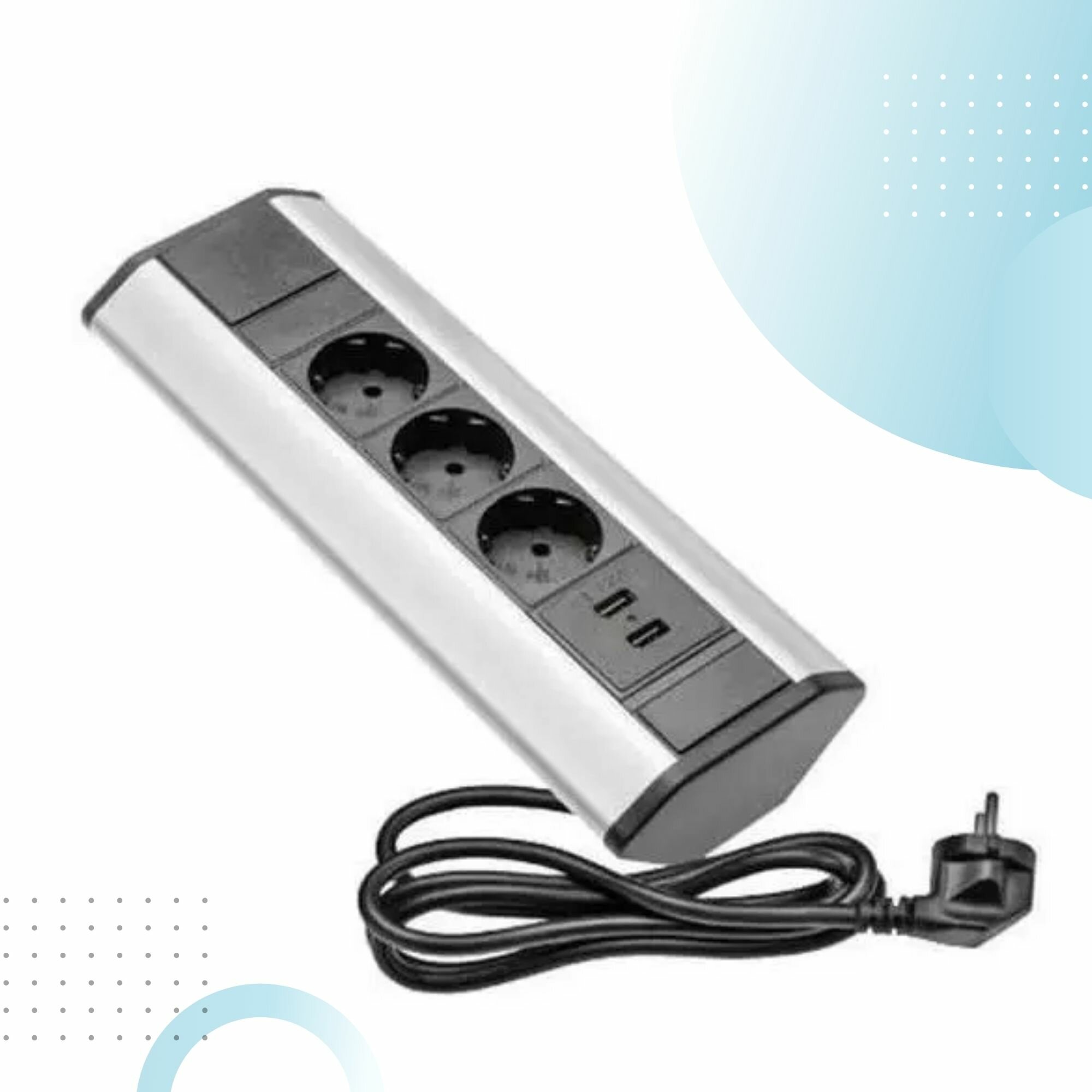 Блок розеток угловой Tringle 3 розетки, 2 USB, с удлинителем, серебристо-черный