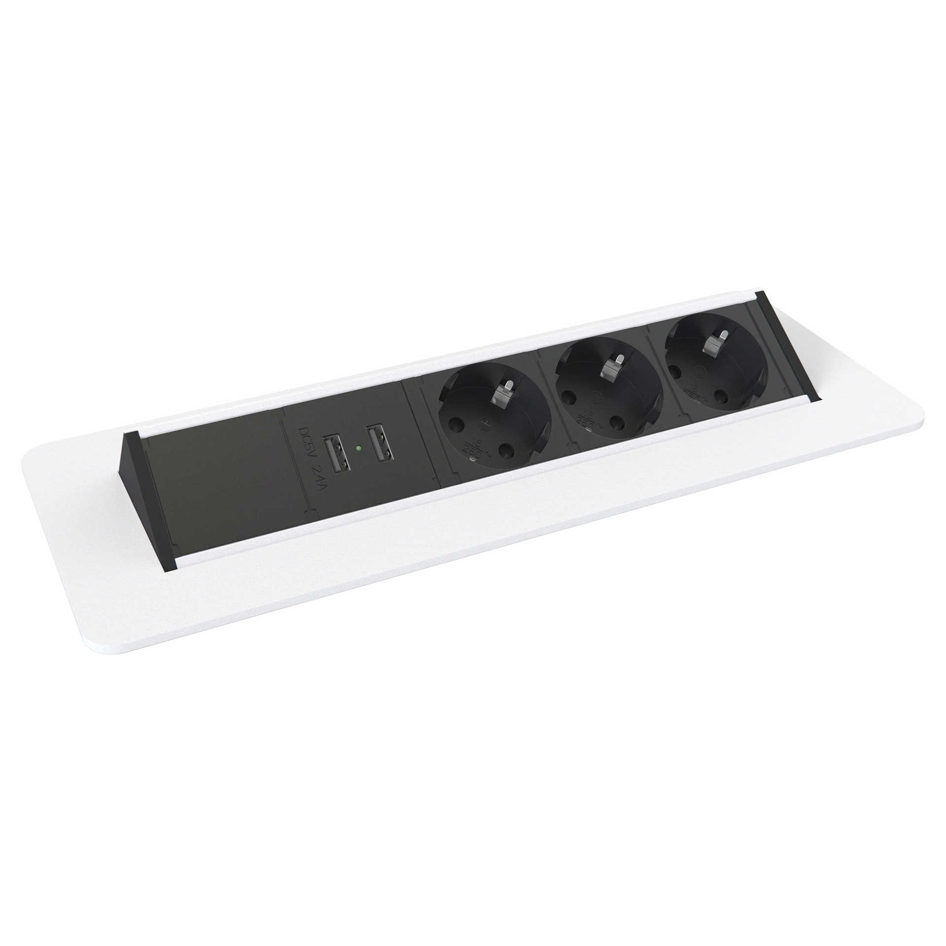 10 цен на Kondator 935-F300W- Встраиваемая розеточная станция серии Axessline с 3 розетками и 2xUSB, белая
