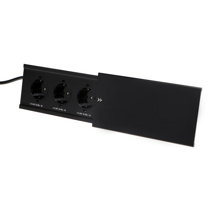 Блок розеточный в стол, сдвижная крышка, 10А, 3 розетки, провод 1.8 м, черный 7451035 информация:
