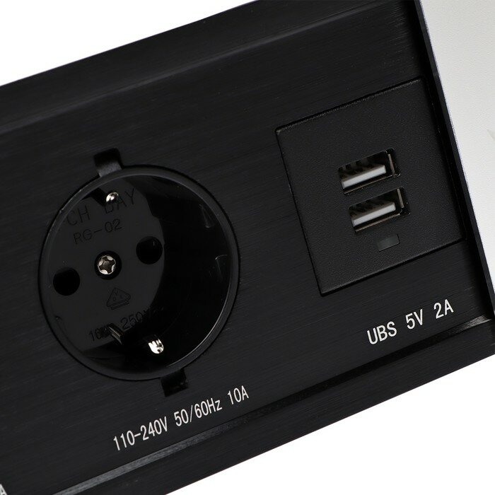 10 цен на Блок розеточный в стол, сдвижная крышка, 10А, 2 розетки, 2xUSB, 2A, провод 1.8 м, серебр.