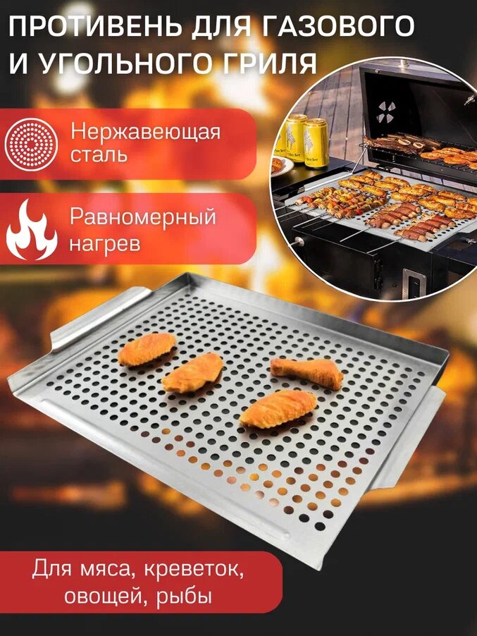 10 цен на Противень перфорированный 36*30 см / Топпер для гриля BBQGURU
