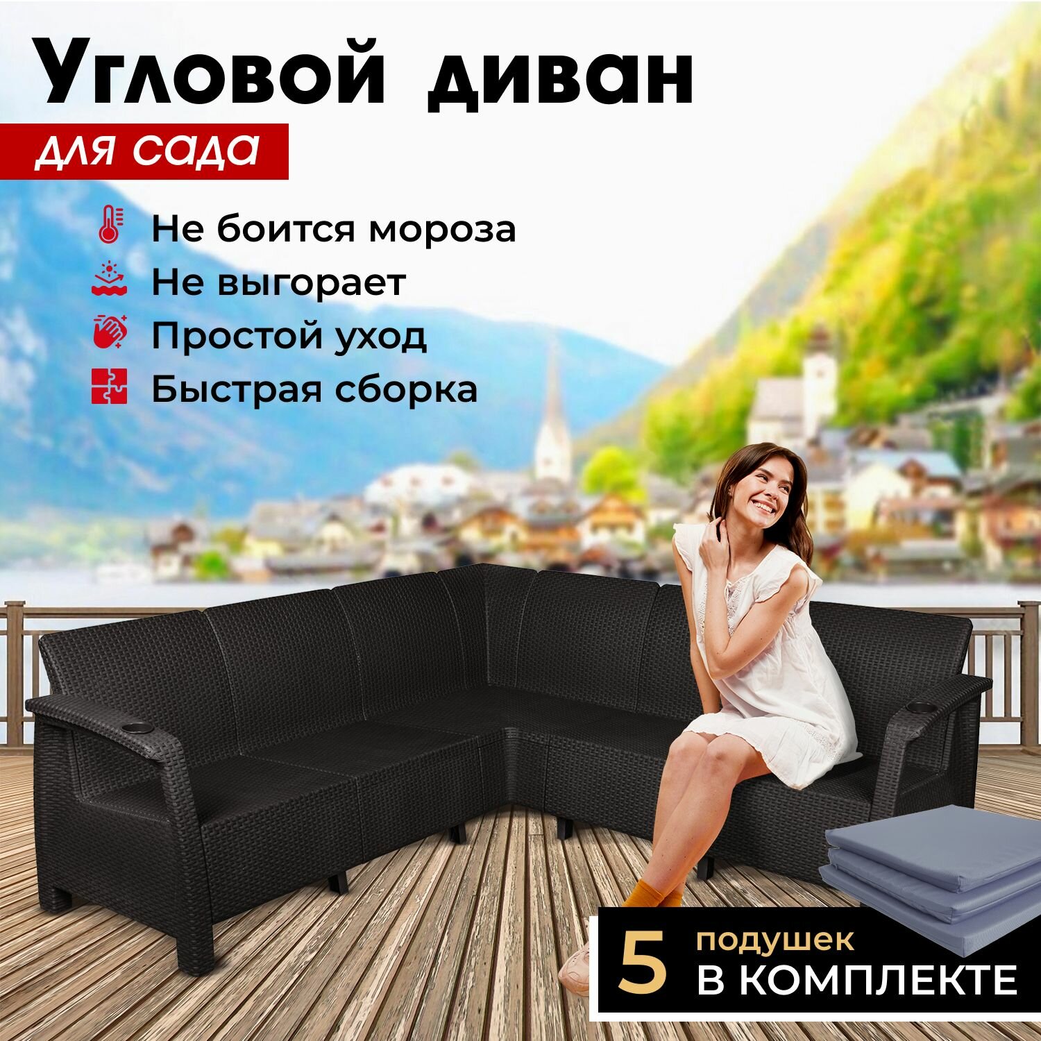 Диван садовый угловой из ротанга мокко (без подушки) 200x200x79 см информация: