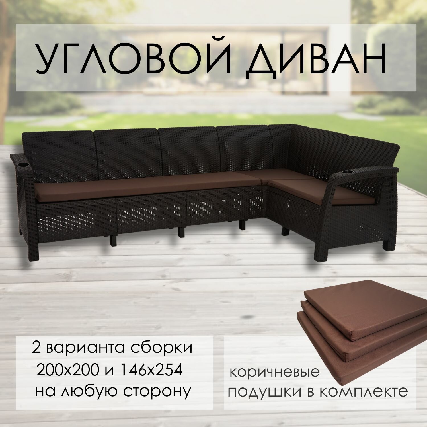 10 цен на Диван садовый L-угловой Ротанг, мокко (подушки коричневого цвета)