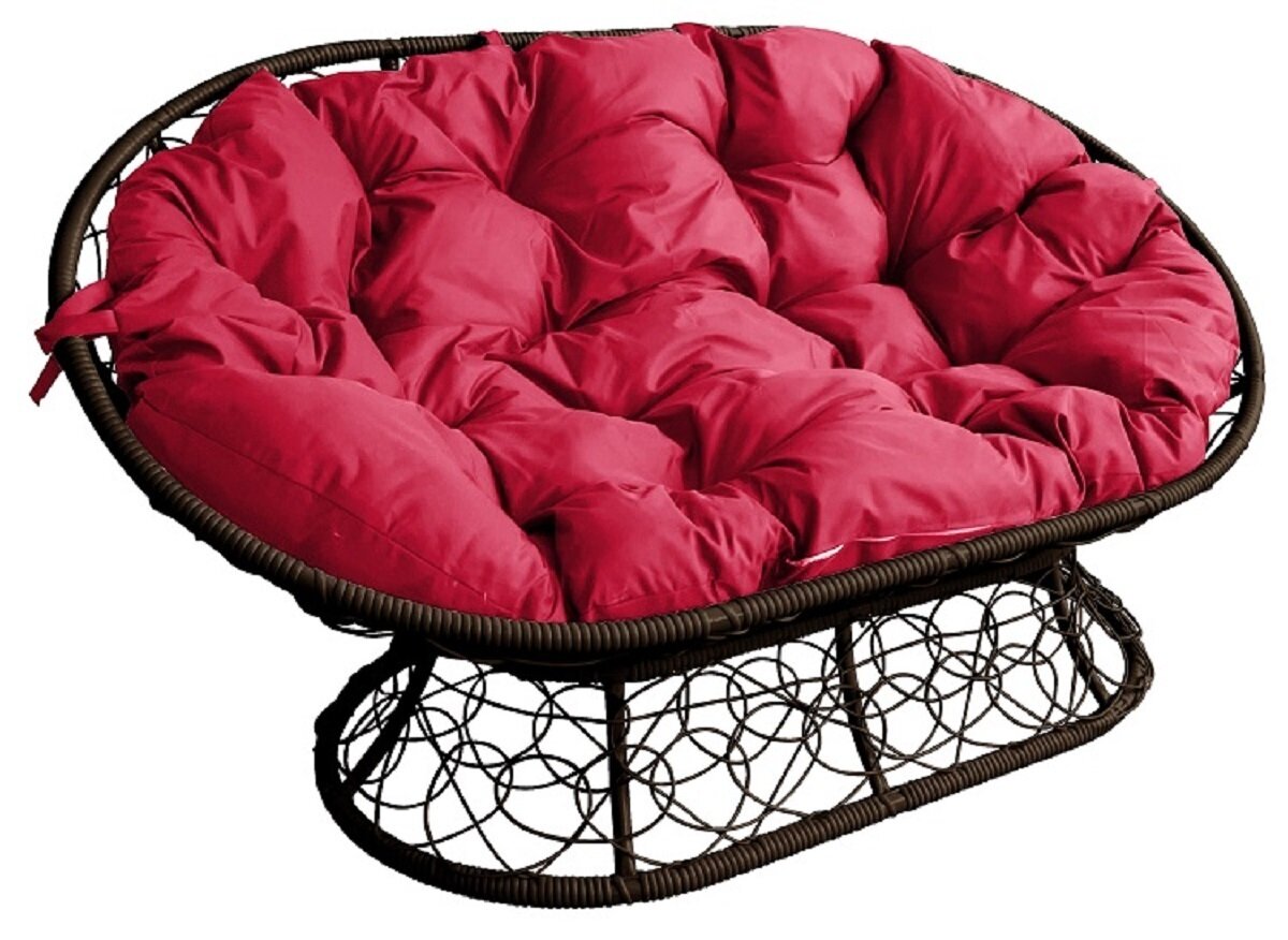10 цен на Диван мамасан с ротангом коричневый, красная подушка