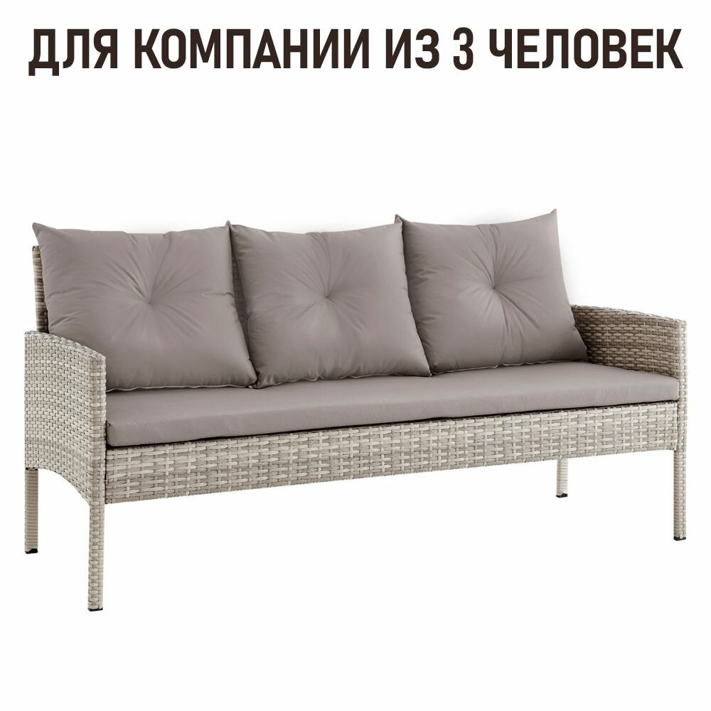 Диван садовый для дачи Фьорд трехместный из ротанга, серый информация: