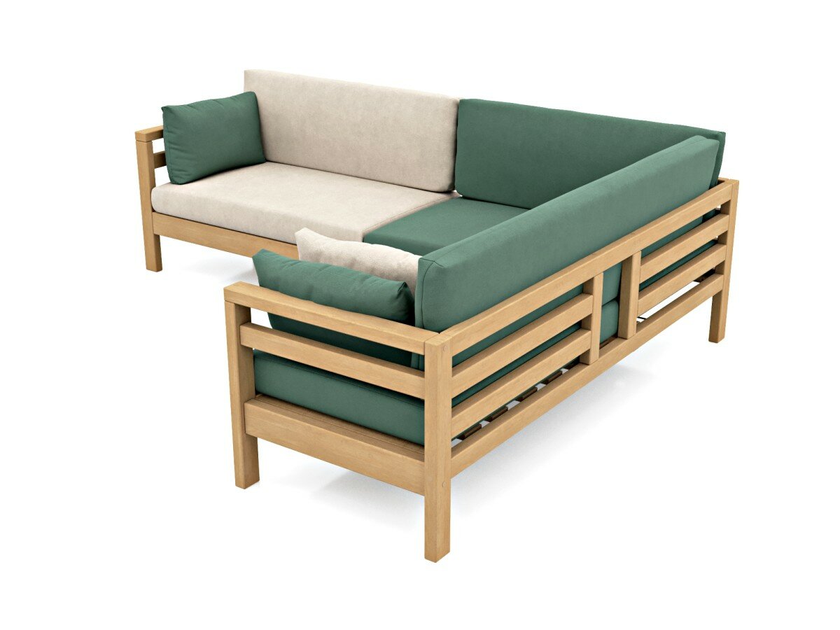 10 цен на Диван угловой садовый Soft Element Бонни зеленый, массив дерева, велюр, с подушками на террасу, на веранду, для дачи и сада, дачный, для бани