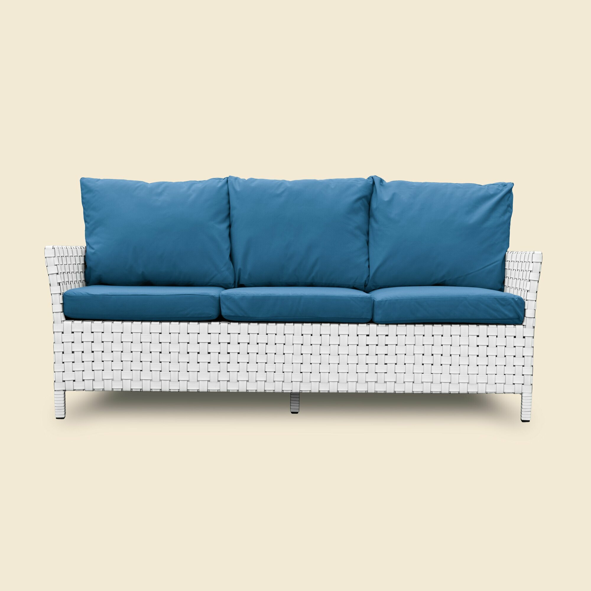 Отзывы на Диван плетеный из ротанга 3-х местный STILO, белый, подушки синие