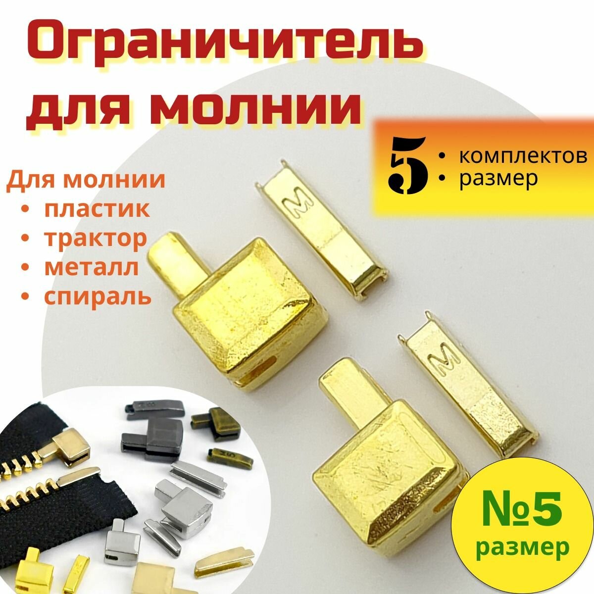 Отзывы на Комплект для ремонта молнии, нижний ограничитель, стоппер, размер 5, Золото