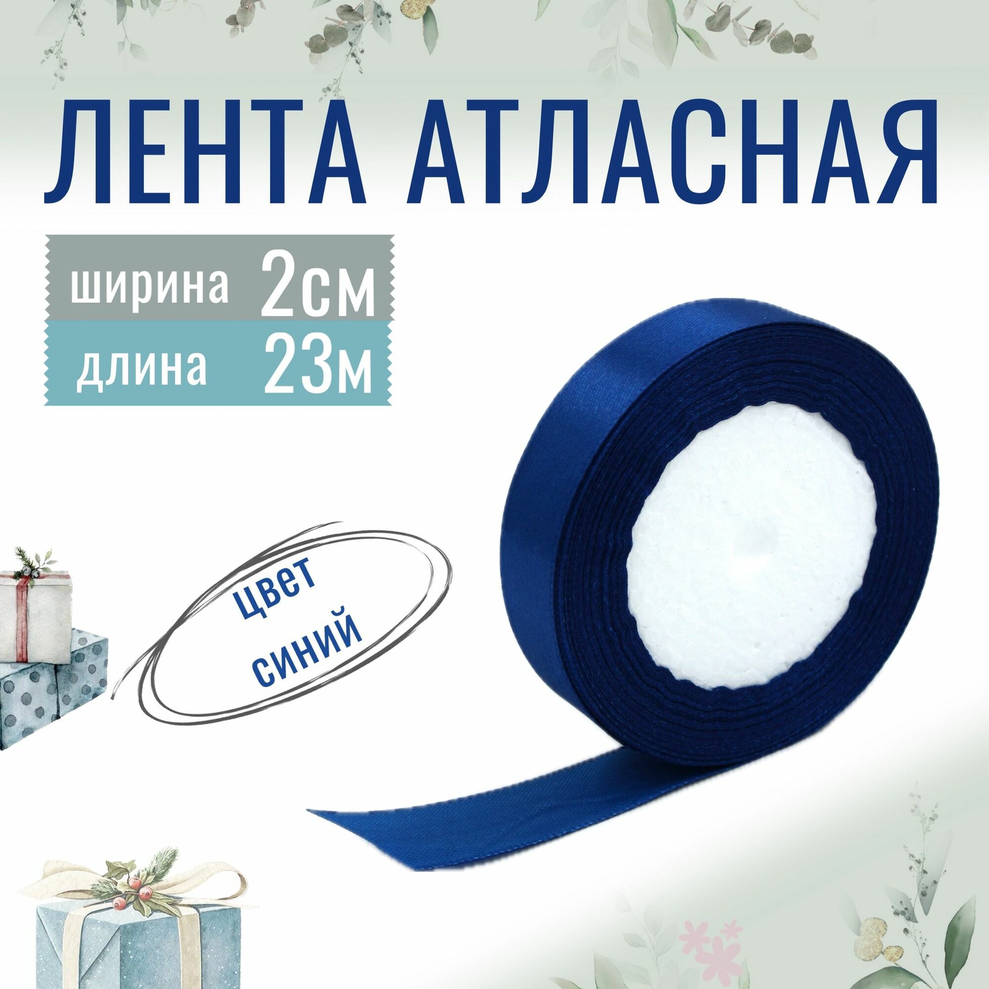 Лента атласная 2см х 23м синяя, упаковочная для рукоделия, для декора и творчества, шитья, упаковки и оформления подарков, 20мм информация: