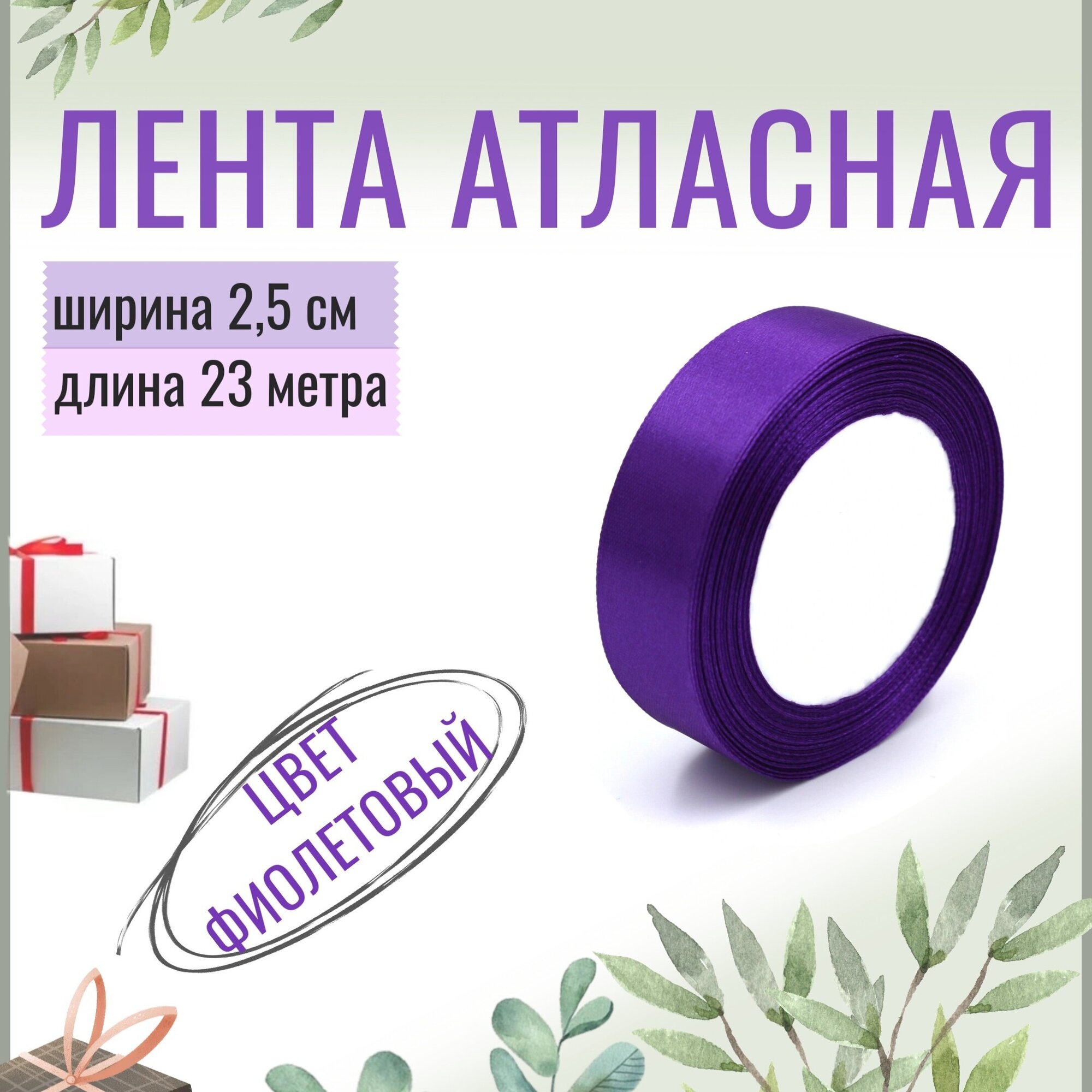 Лента атласная 2,5см х 23м фиолетовая, 25мм информация: