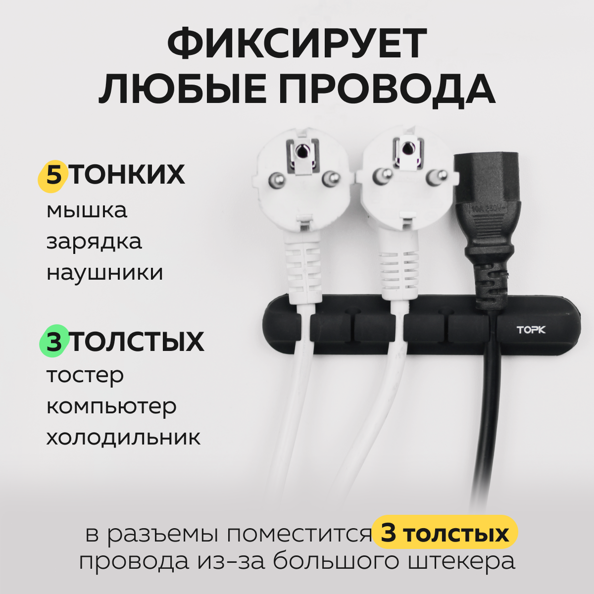 Держатель для кабелей на стол, органайзер для проводов 5 ячеек