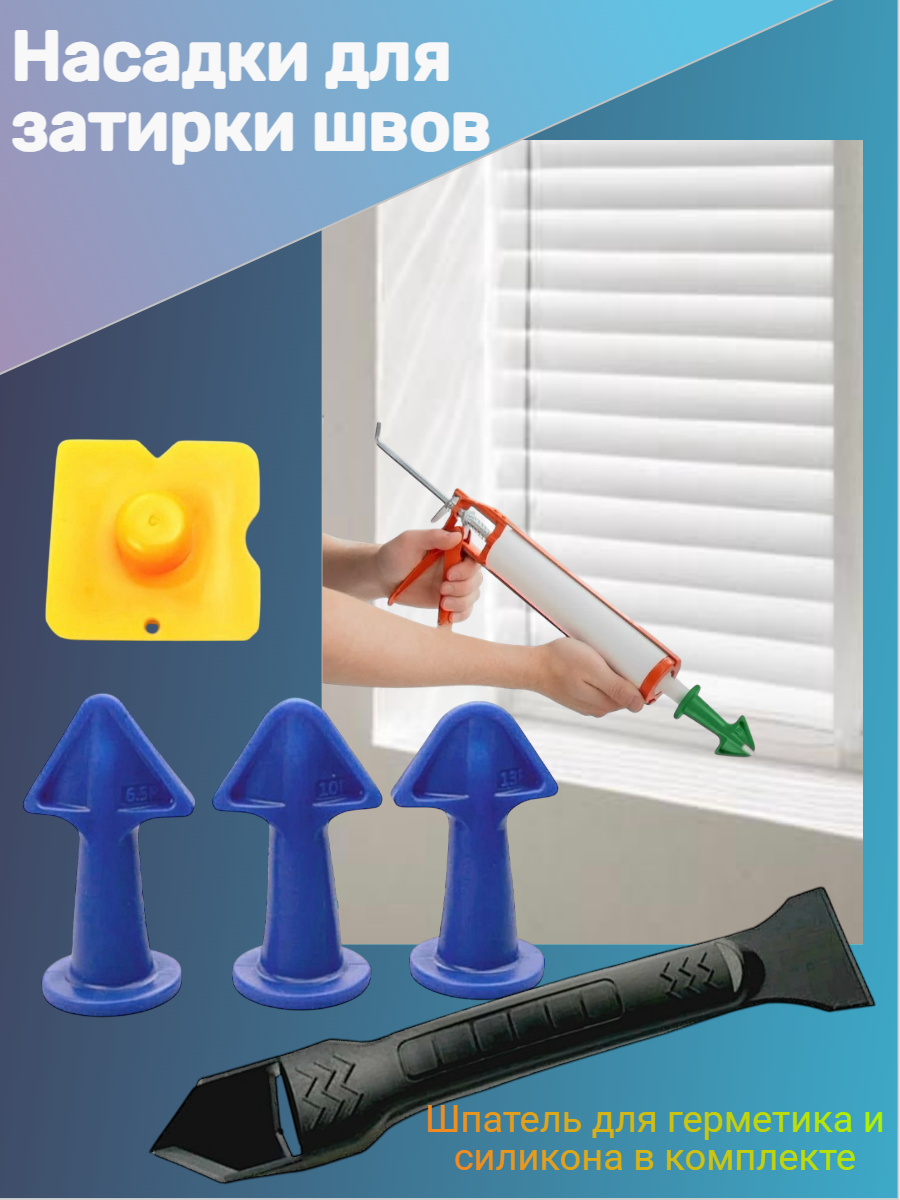 10 цен на Насадки для затирки швов + Шпатель для герметика и силикона в комплекте
