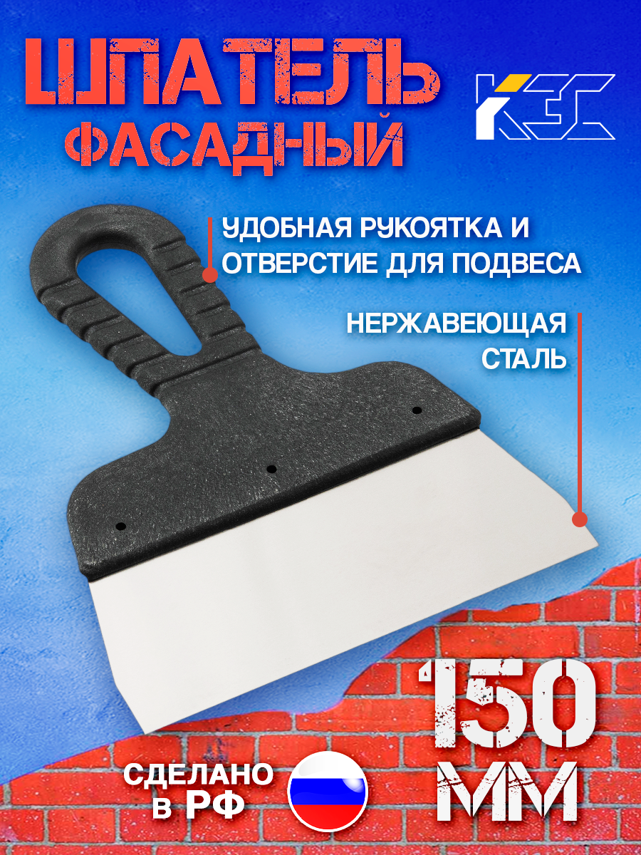 Шпатель фасадный, шпатель строительный из нержавеющей стали, 150 мм, пластиковая рукоятка 178 ₽
