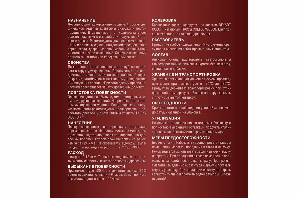 HUSKY SIBERIAN Пропитка для дерева полуматовая тиковое дерево* (9л) информация: