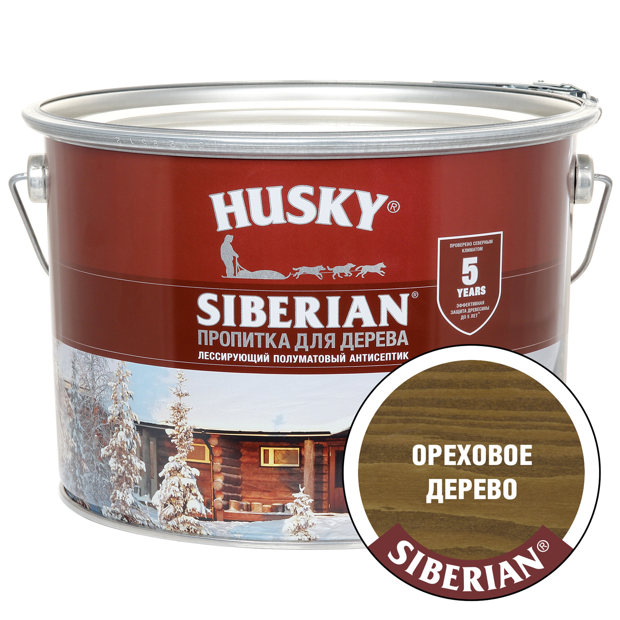 Антисептик Husky Siberian полуматовый, ореховое дерево 9 л информация: