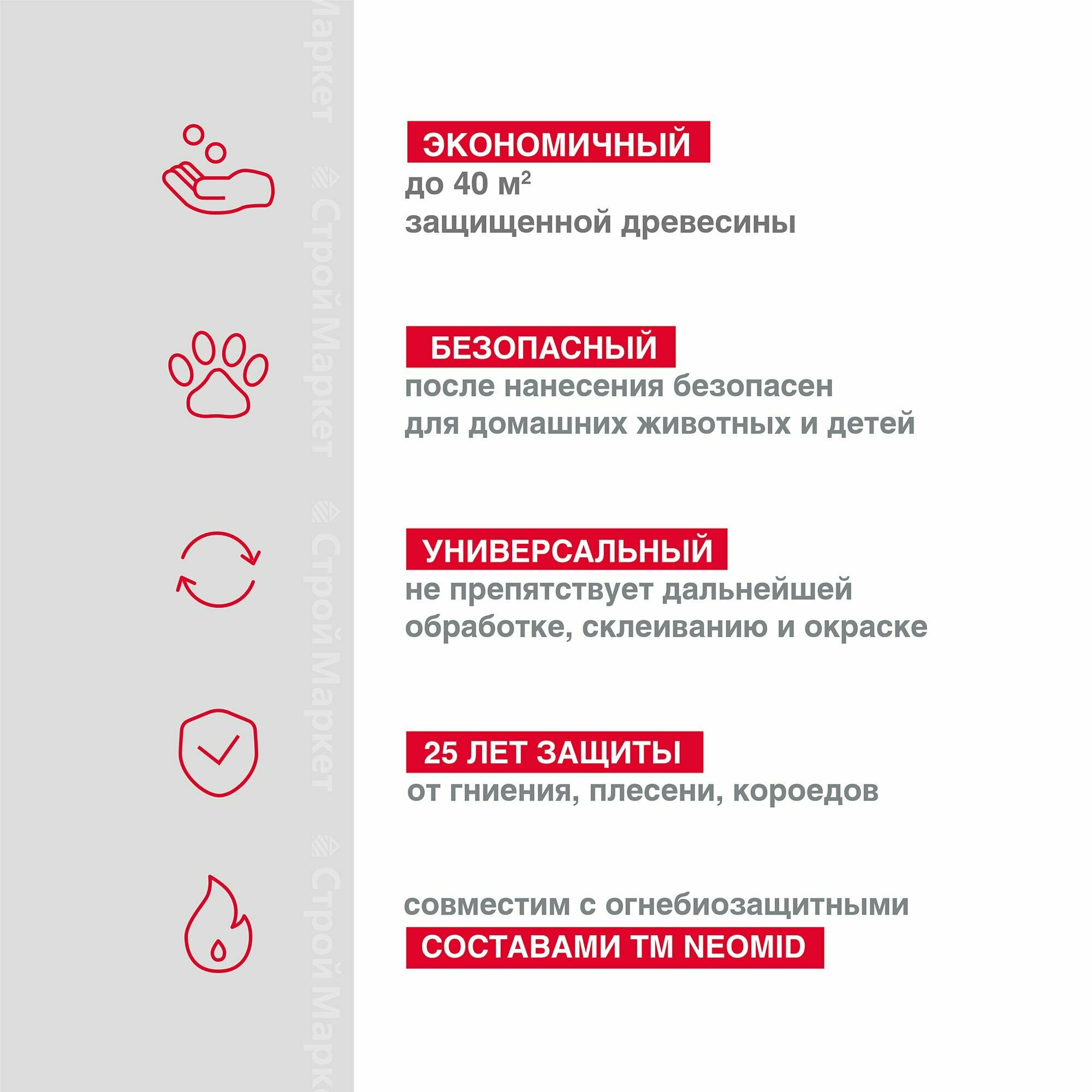 Неомид антисептик для дерева Neomid 440 Eco (1 кг), для наружных и внутренних работ , концентрат 1:9 - 10 кг готового состава , защита от гниения плесени короеда на 25 лет информация: