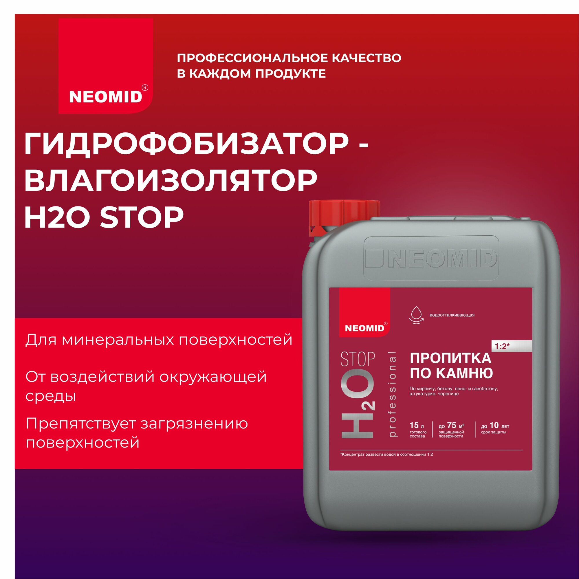 NEOMID пропитка PROTECT H2O STOP Professional гидрофобизатор-влагоизолятор, концентрат