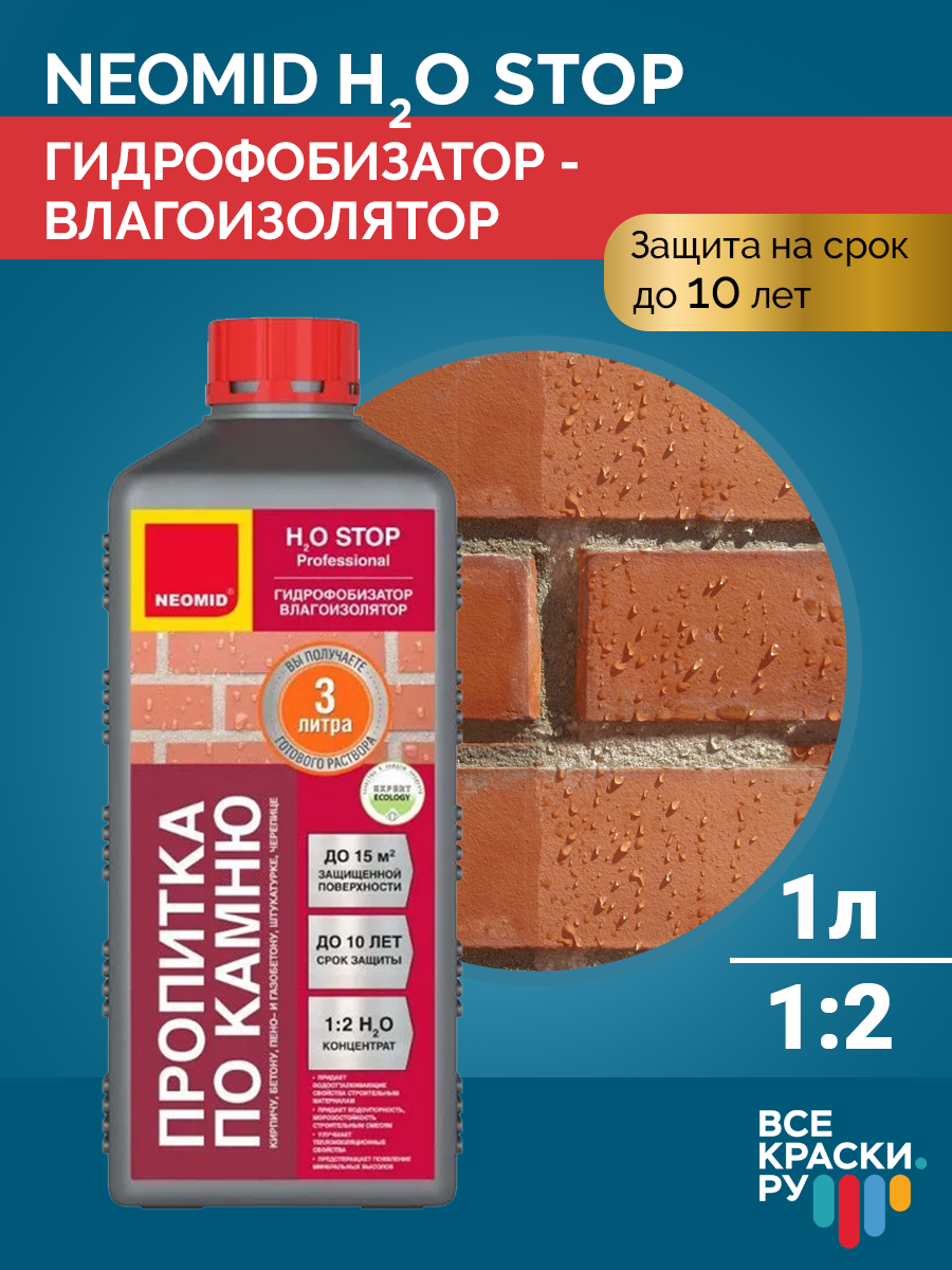 NEOMID H2О STOP пропитка по камню, водогрязеотталкивающая, концентрат 1:2 (1л)