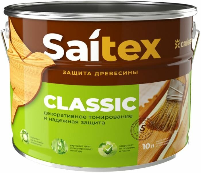 Деревозащитный состав Saitex Classic орегон 10л 3 467 ₽