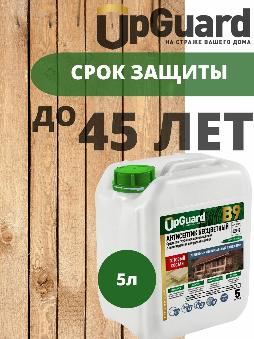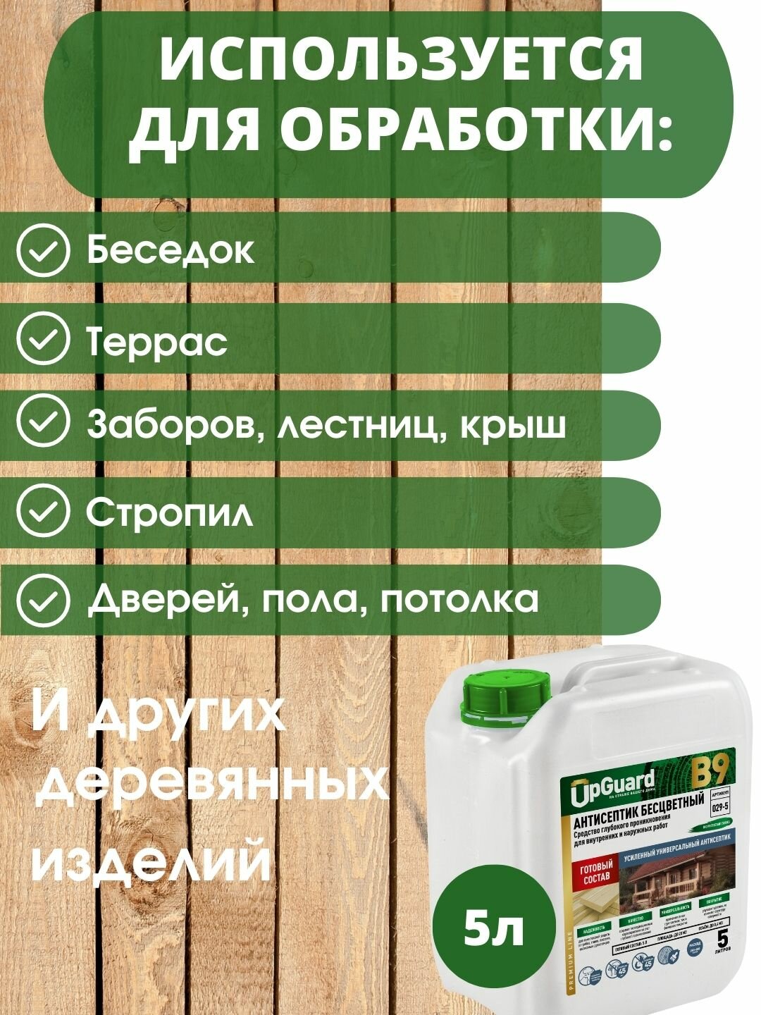 Антисептик пропитка для дерева бесцветный, универсальный, трудновымываемый UpGUARD B9 -5л, готовый состав для защиты древесины до 45 лет. информация: