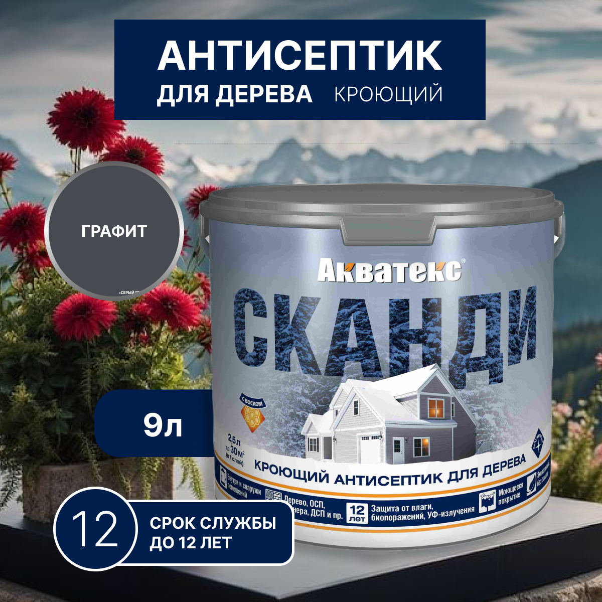 Пропитка для дерева кроющая графит Акватекс Сканди 9л информация: