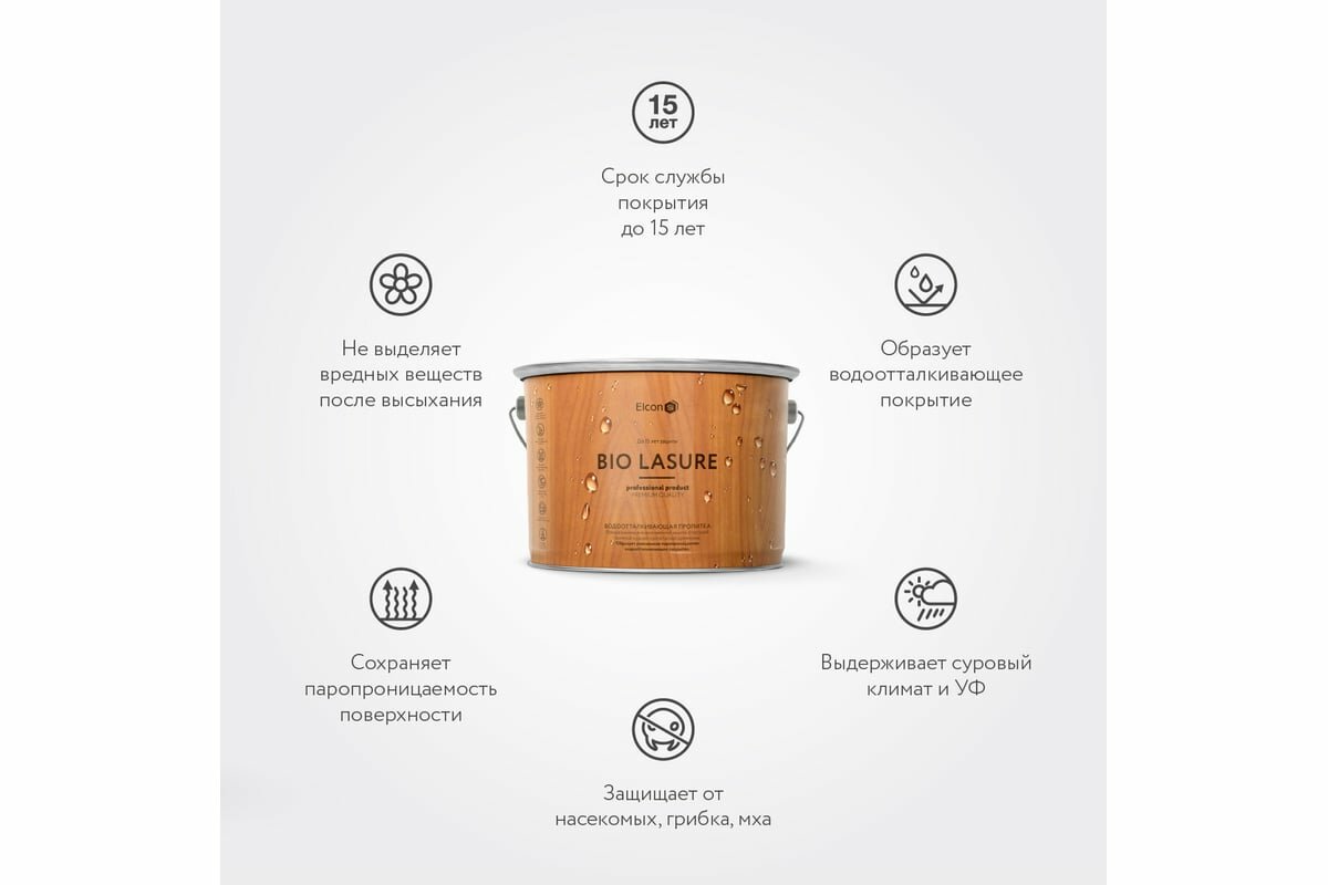 Elcon Водоотталкивающая пропитка для защиты дерева до 15 лет, антисептик для дерева,Bio Lasure орегон, 9 л 00-00461960 информация:
