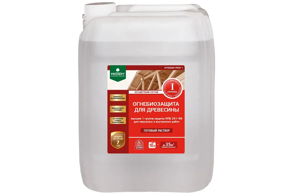 10 цен на Огнебиозащита для древесины, 1 группа Prosept ОгнеБио Prof 1 (10л) бесцветный