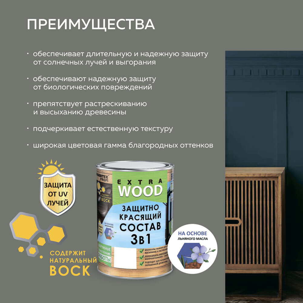 Дуб (0,8л) состав защитно-красящий 3 в 1 FARBITEX профи WOOD EXTRA информация: