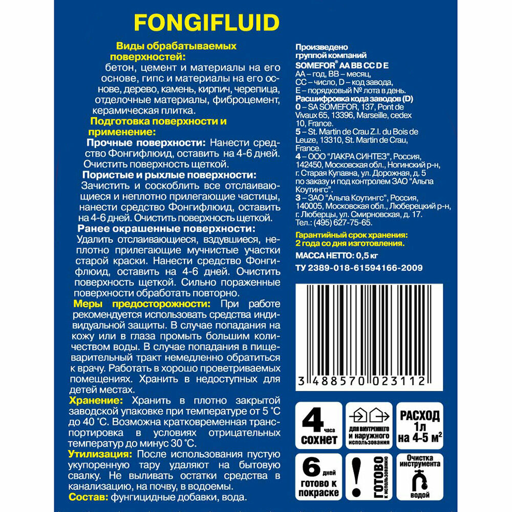 Средство Alpa Фонгифлюид против грибка и плесени, 3 л информация:
