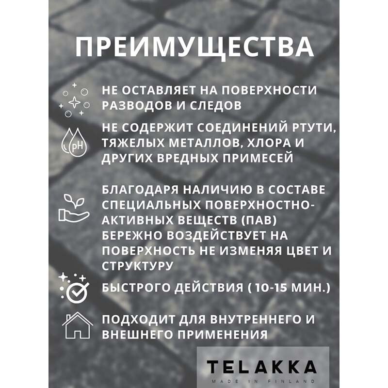 Очистка тротуарной плитки, кирпича, керамогранита, камня TELAKKA STONE 5л информация: