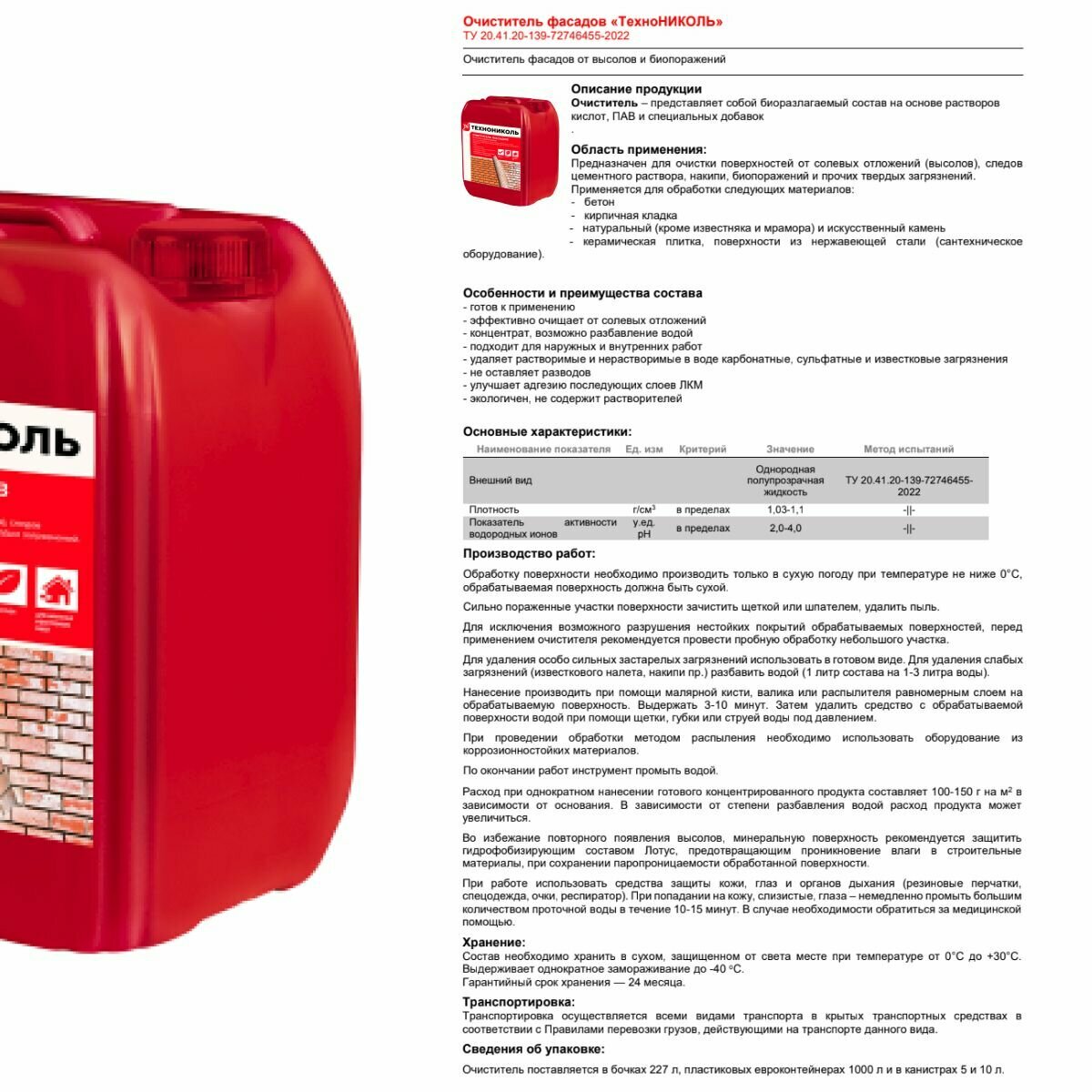 Очиститель фасадов технониколь, 5л информация: