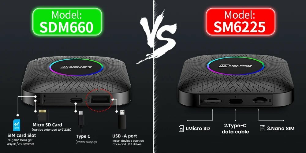 CarlinKit Ambient CarPlay Ai Box QCM6225 Android 13 - 8/128 RGB