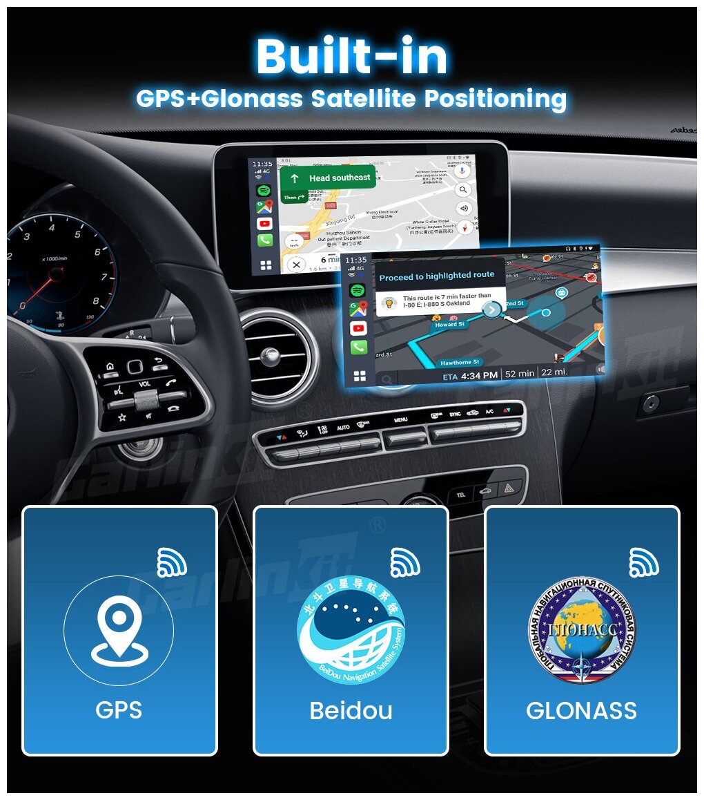 CARMEDIA Андроид-блок для Mercedes-Benz 2017+ (со штатным CarPlay) - Carmedia AI-996M на Android 10, 4ГБ-64ГБ, 4G-SIM (подключение по USB)