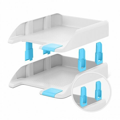 Отзывы на Набор из 2 пластиковых лотков для бумаг с боковыми креплениями ErichKrause® Forte, Pastel, белый с голубой вставкой