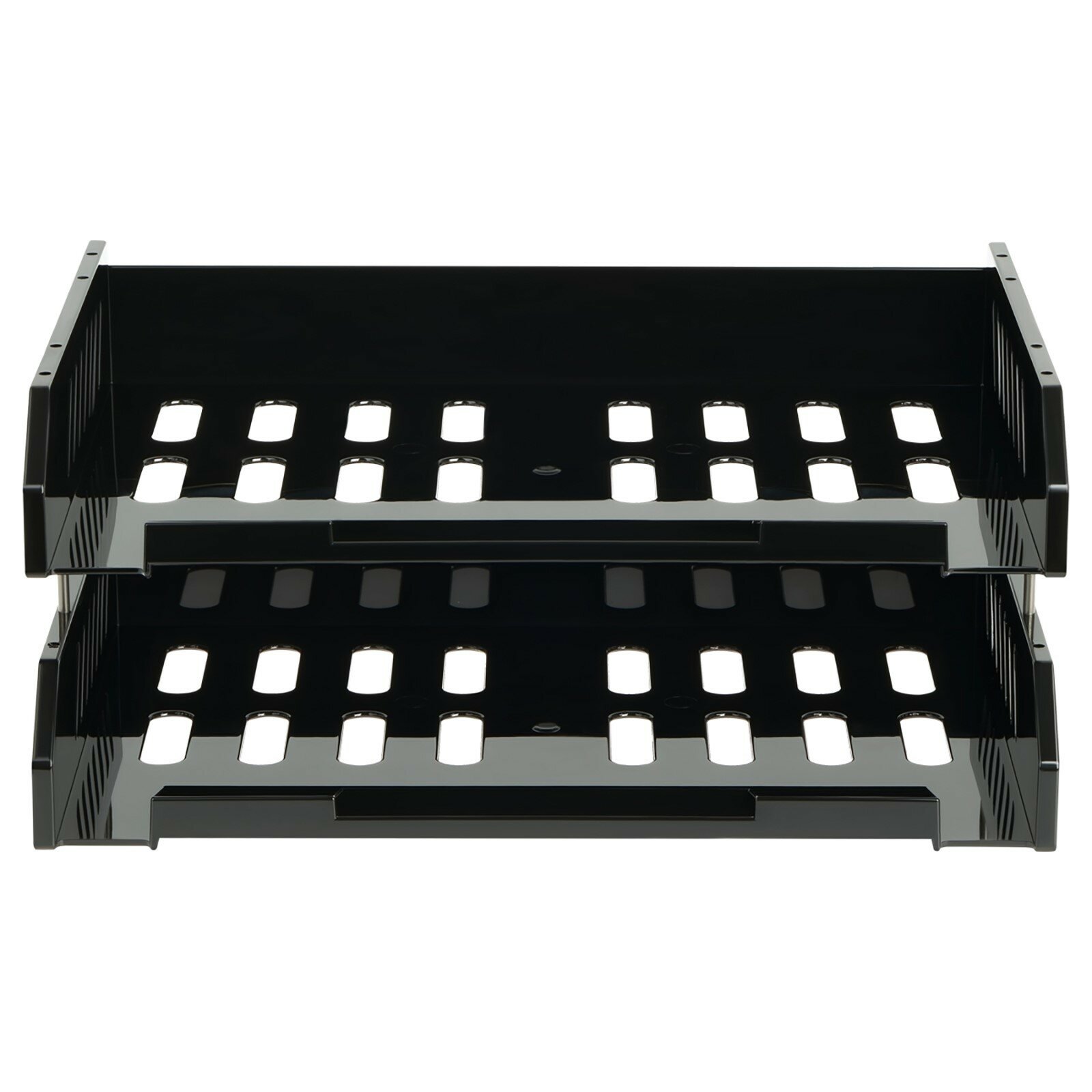Набор лотков для бумаг горизонтальный "Сити", набор 2 штуки, на металлических стержнях, чёрный информация: