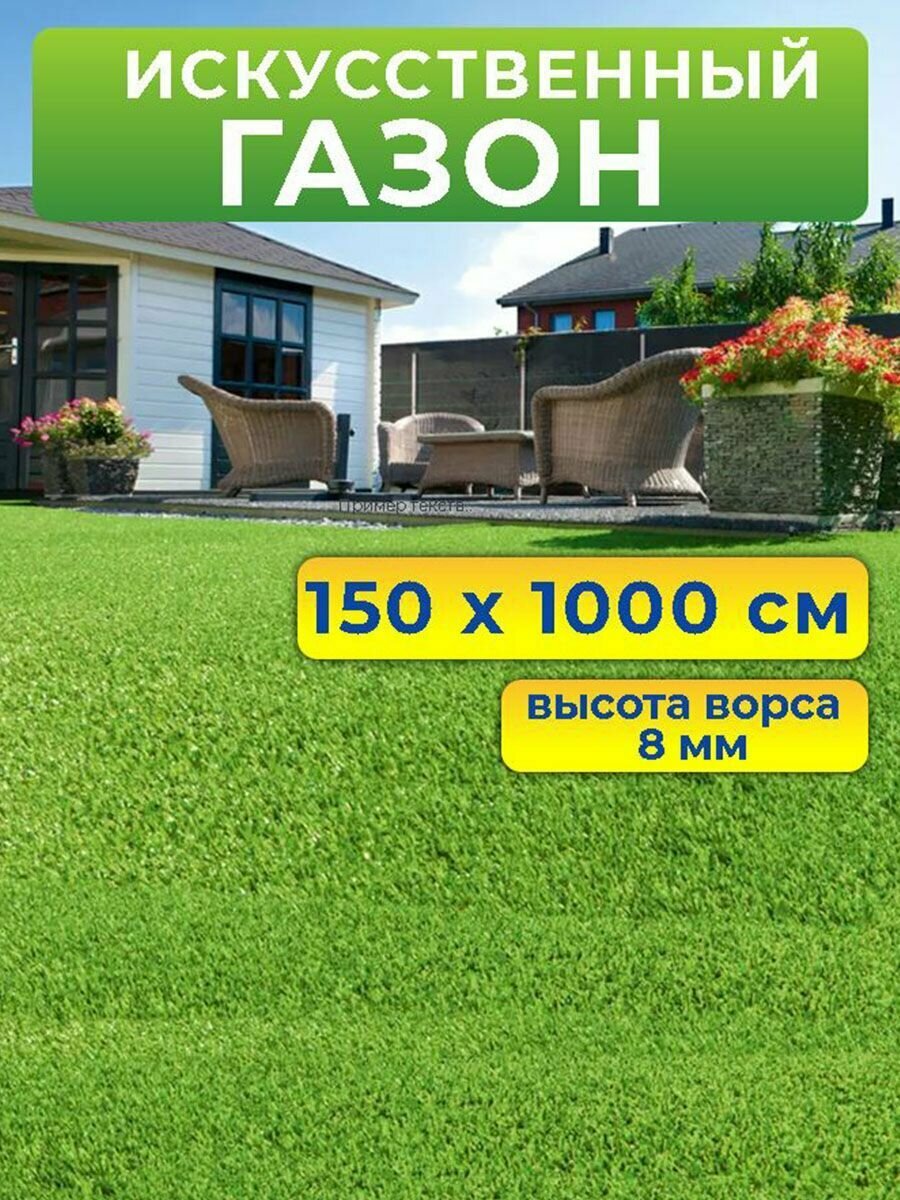 Искусственный газон 150 на 1000 см (высота ворса 8 мм) искусственная трава в рулоне информация: