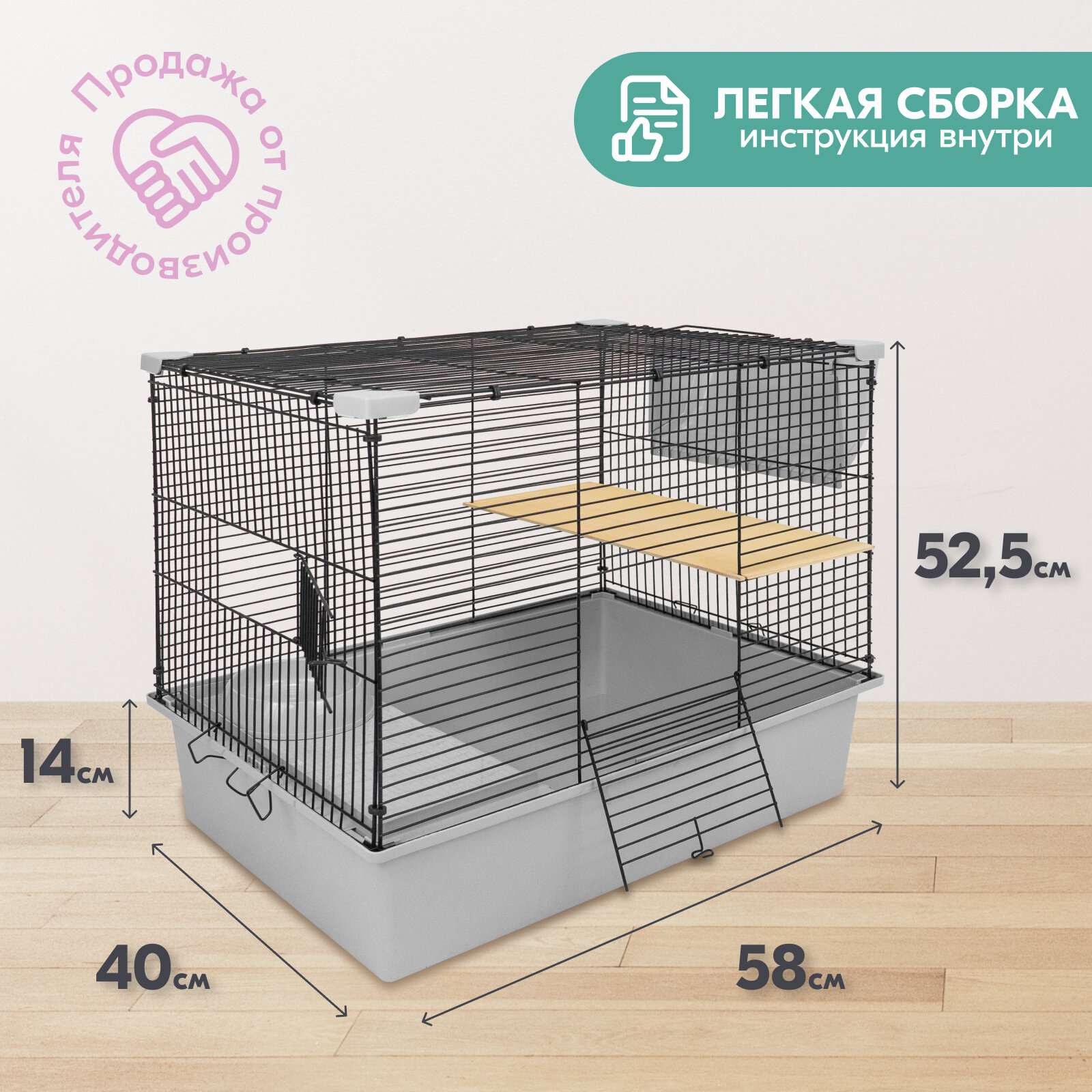10 цен на Клетка для шиншилл PetTails № 1, разборная, шаг прута до 14мм; 58х40хh52,5см, светло-серая
