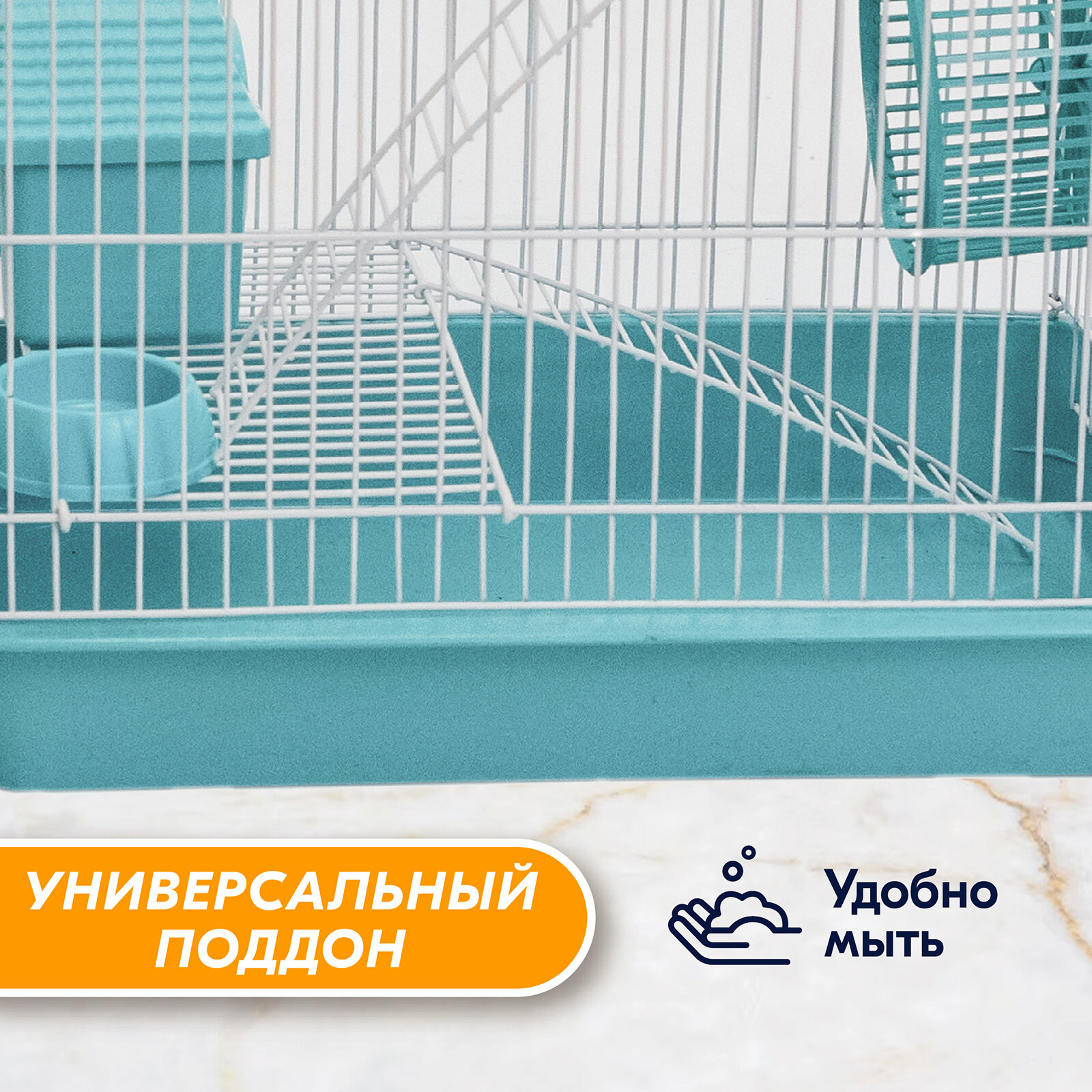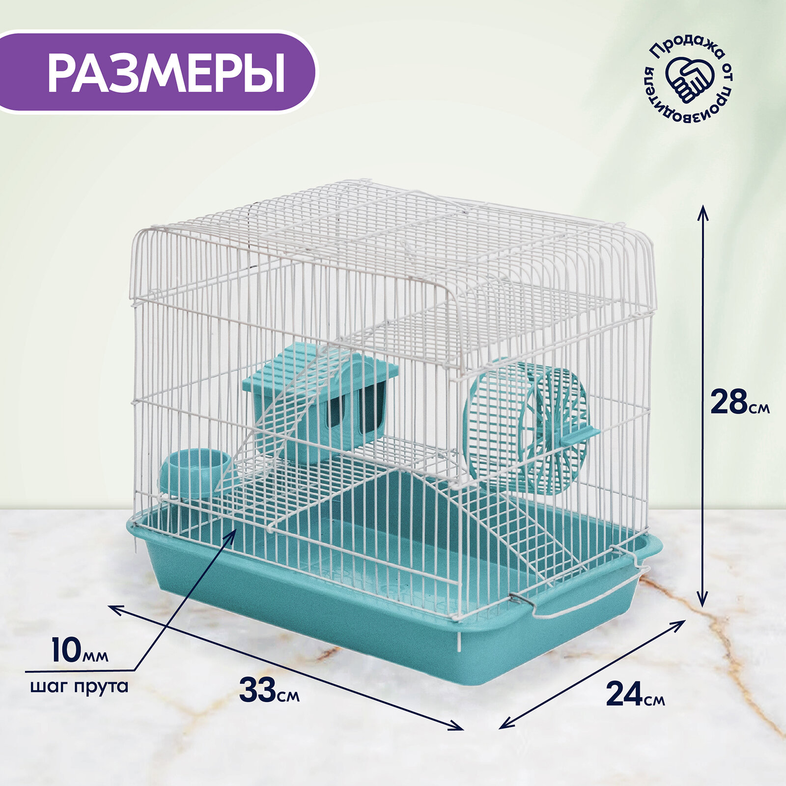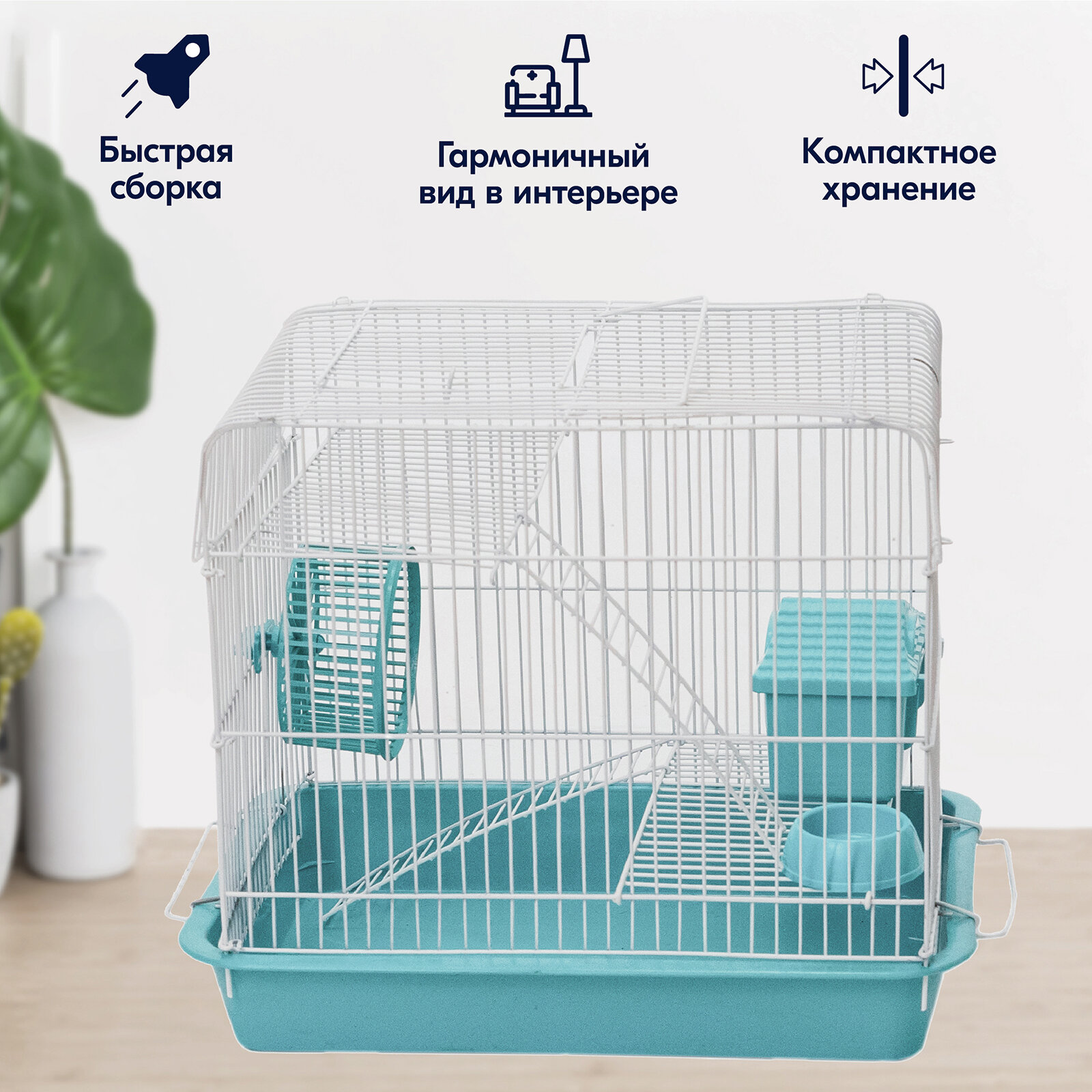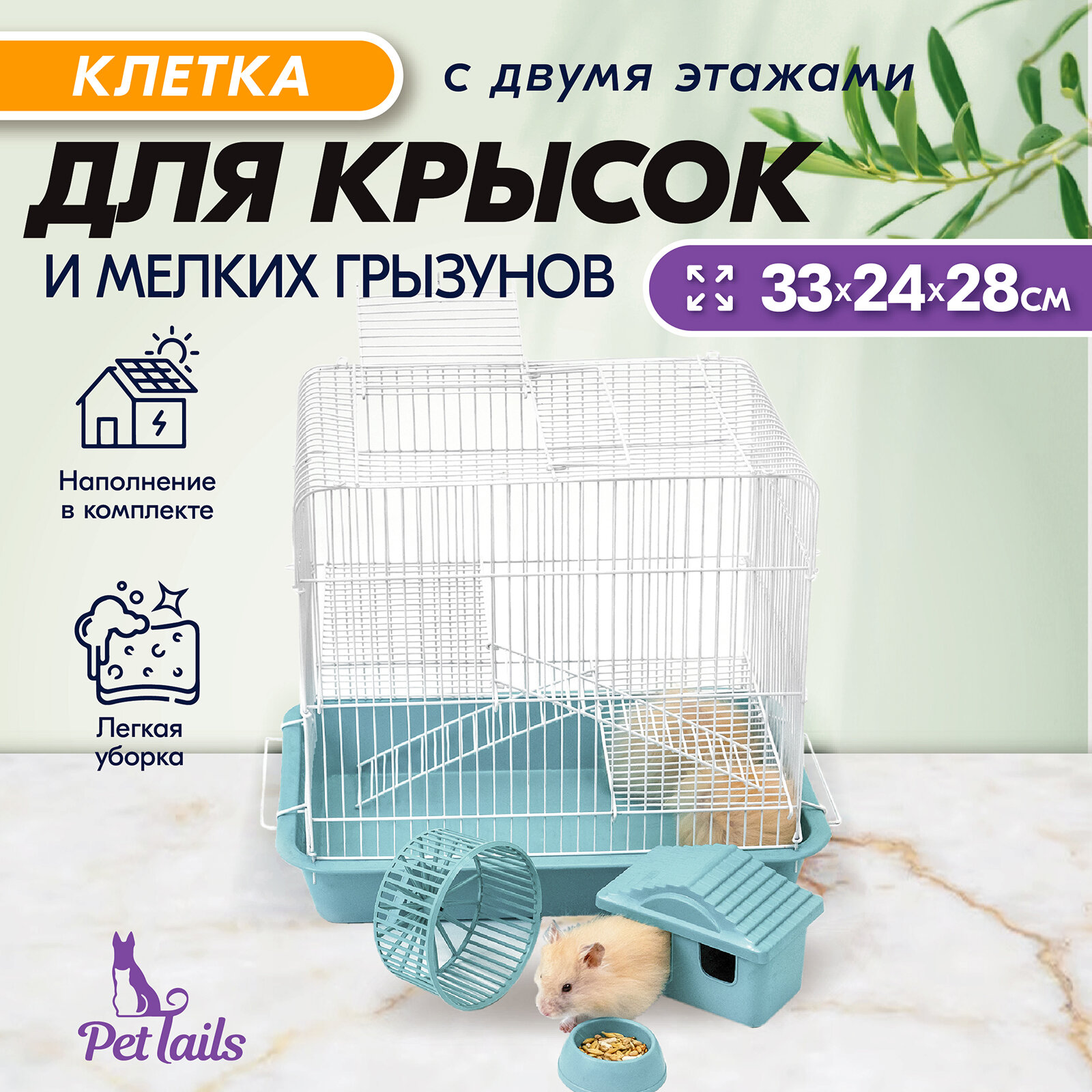 10 цен на Клетка для грызунов (для хомяков, для крыс) "PetTails", №2 шаг прута 10 мм, 2 этажа с наполнением 33*24*h28 см бирюз/бел