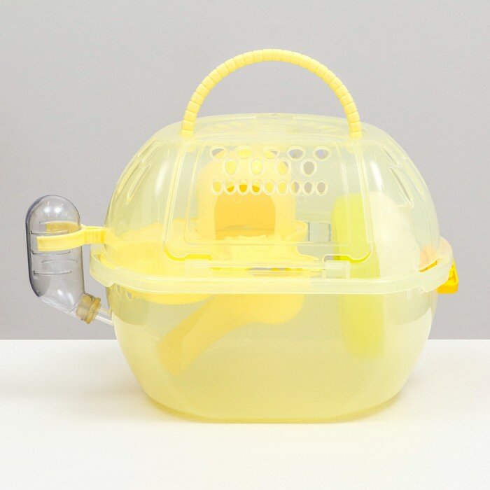 Переноска для грызунов Carno с домиком, полкой, поилкой, 29х23х23 см, жёлтая информация:
