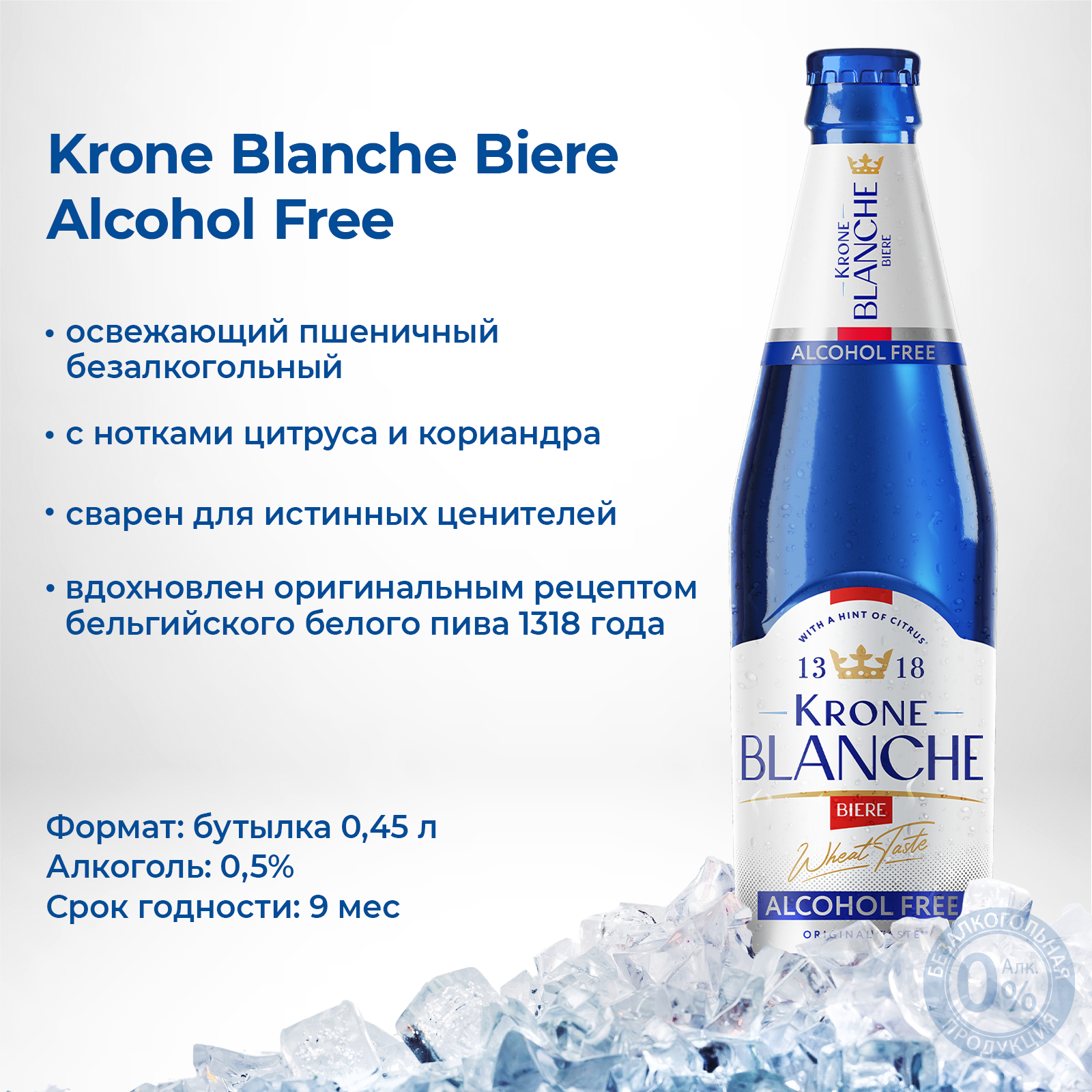 Пивной напиток Krone Blanche Biere Alcohol Free безалкогольный, 20 шт. х 0,45 л, бутылка информация:
