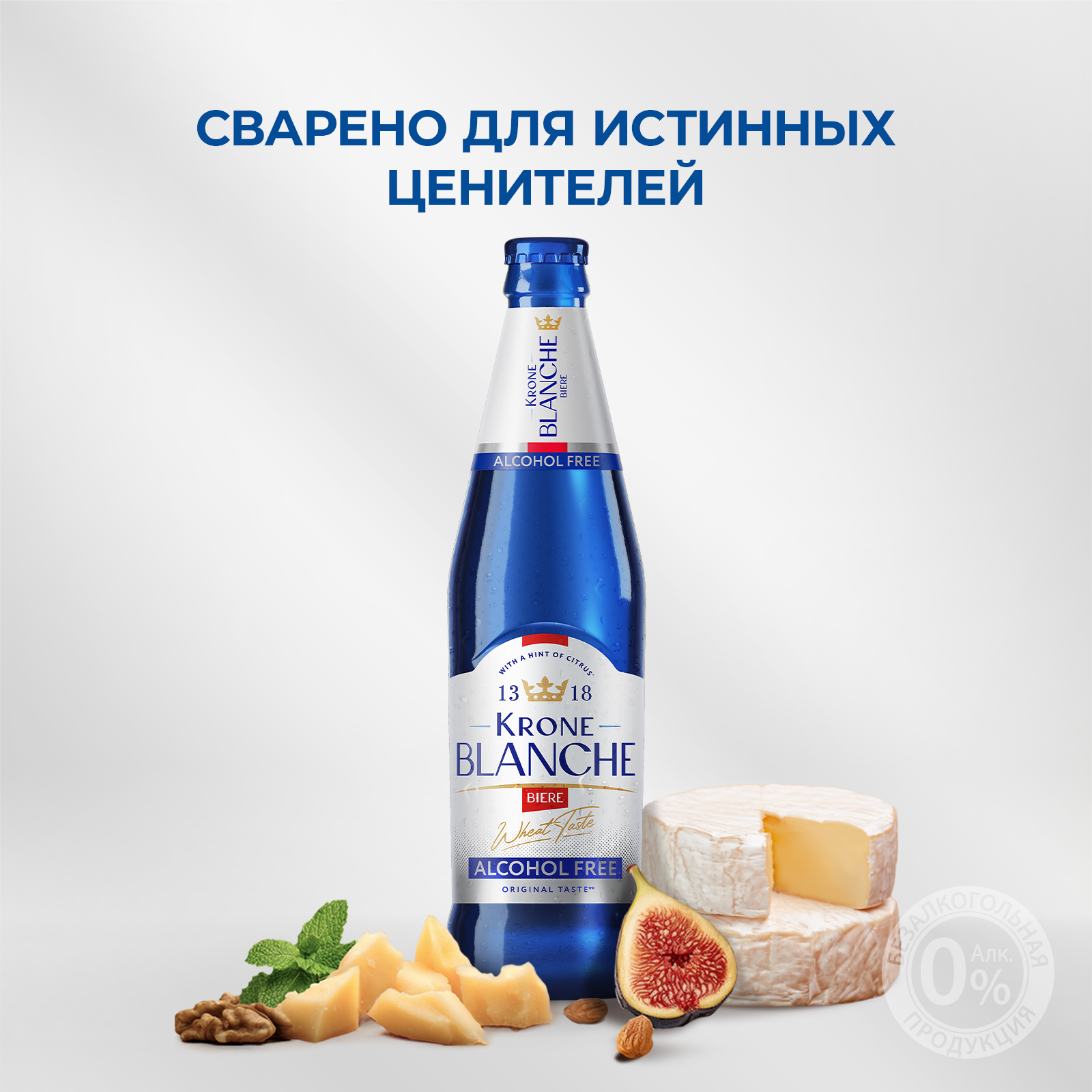 Отзывы на Пивной напиток Krone Blanche Biere Alcohol Free безалкогольный, 20 шт. х 0,45 л, бутылка