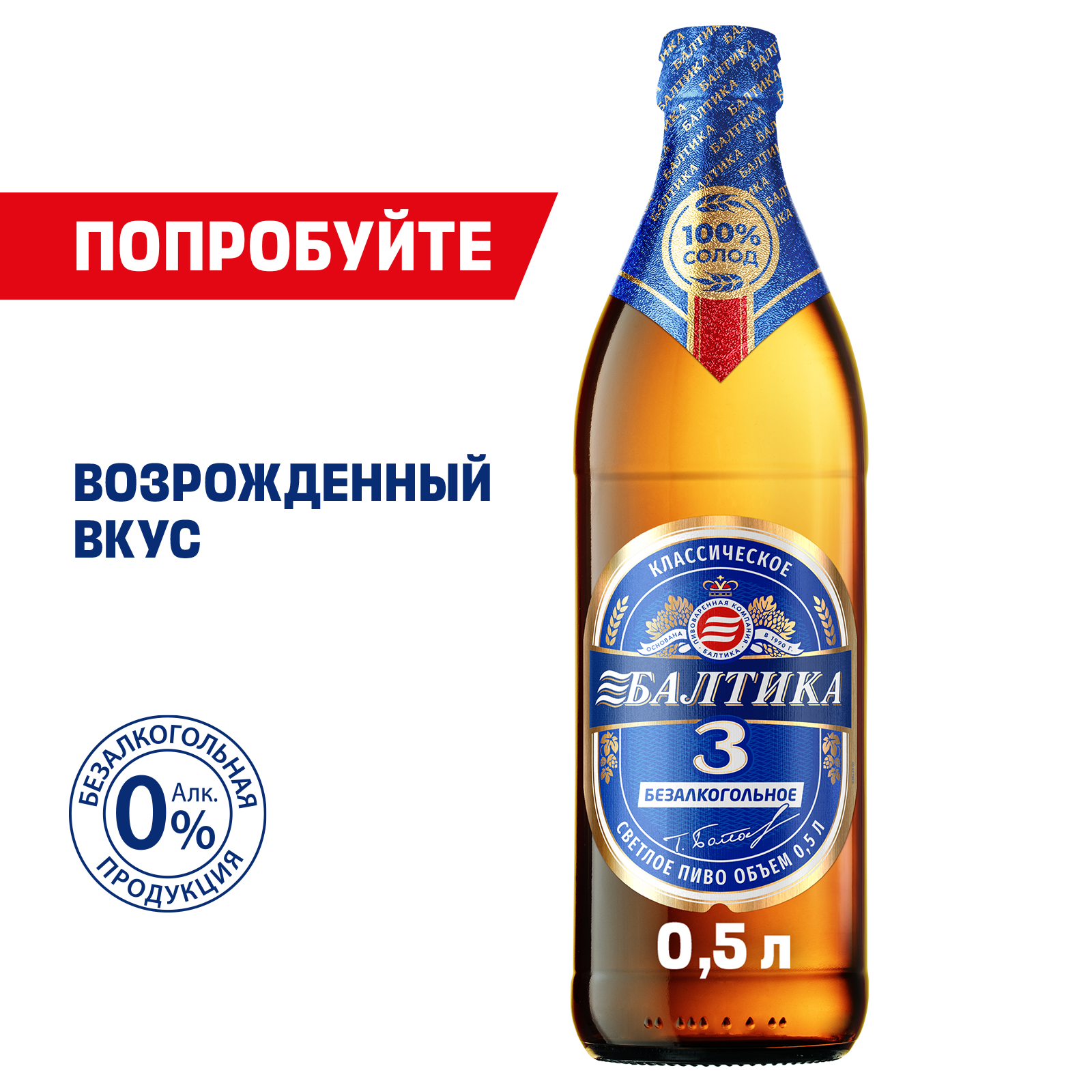 Пиво Балтика №3 Безалкогольное Светлое, 20 шт. х 0,5 л, бутылка информация: