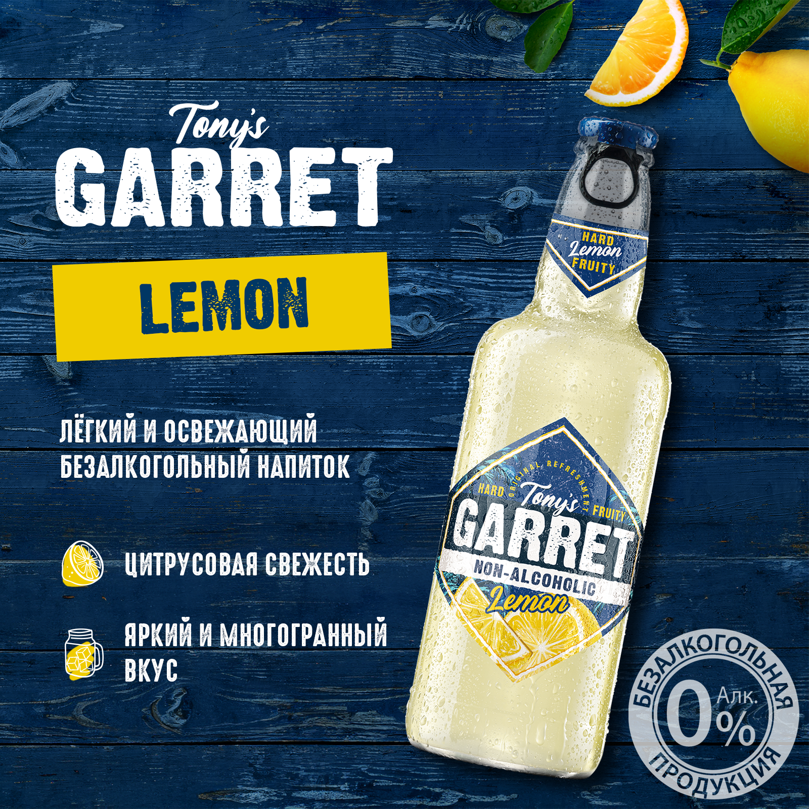 Отзывы на Пивной напиток Tony's Garret Hard Lemon Non-Alcoholic Безалкогольный, 20 шт. х 0,4 л, бутылка
