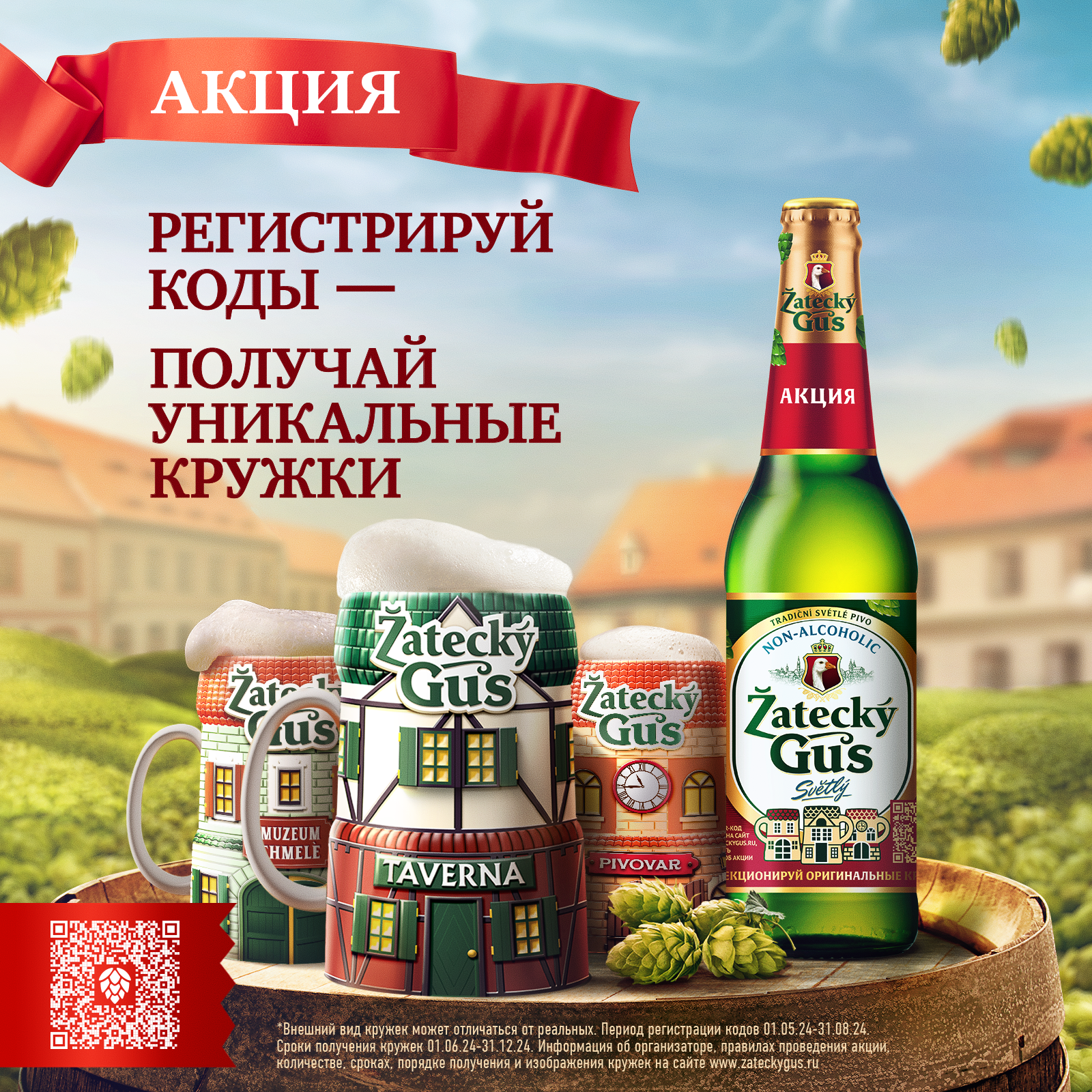 Пиво Zatecky Gus Nealko Безалкогольное Светлое, 20 шт. х 0,45 л, бутылка информация: