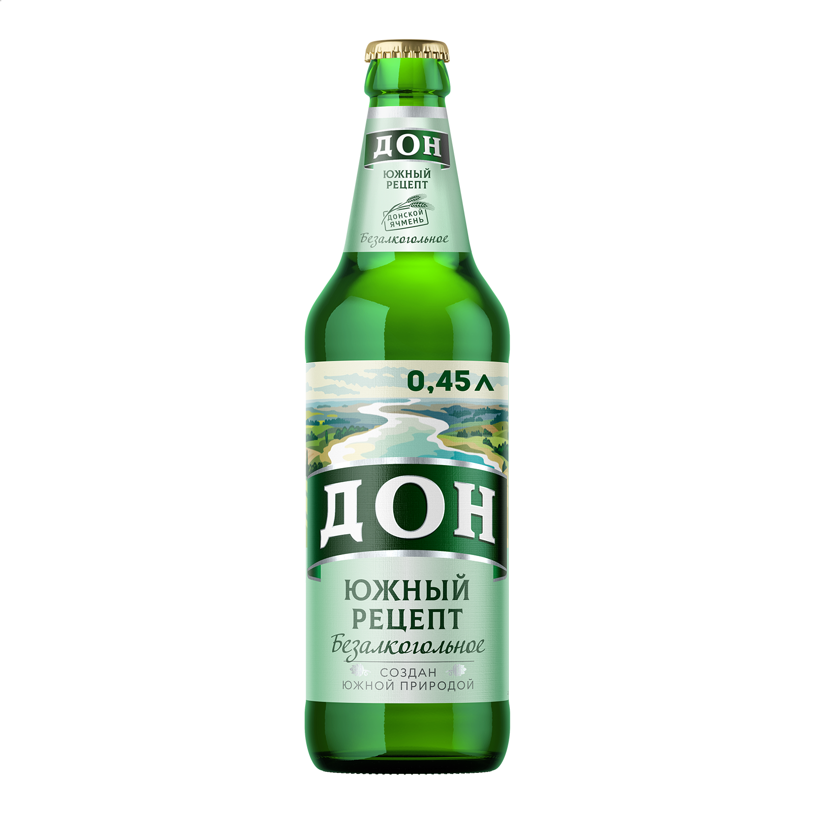 Пиво Дон Южный Рецепт Безалкогольное Светлое, 20 шт. х 0,45 л, бутылка информация: