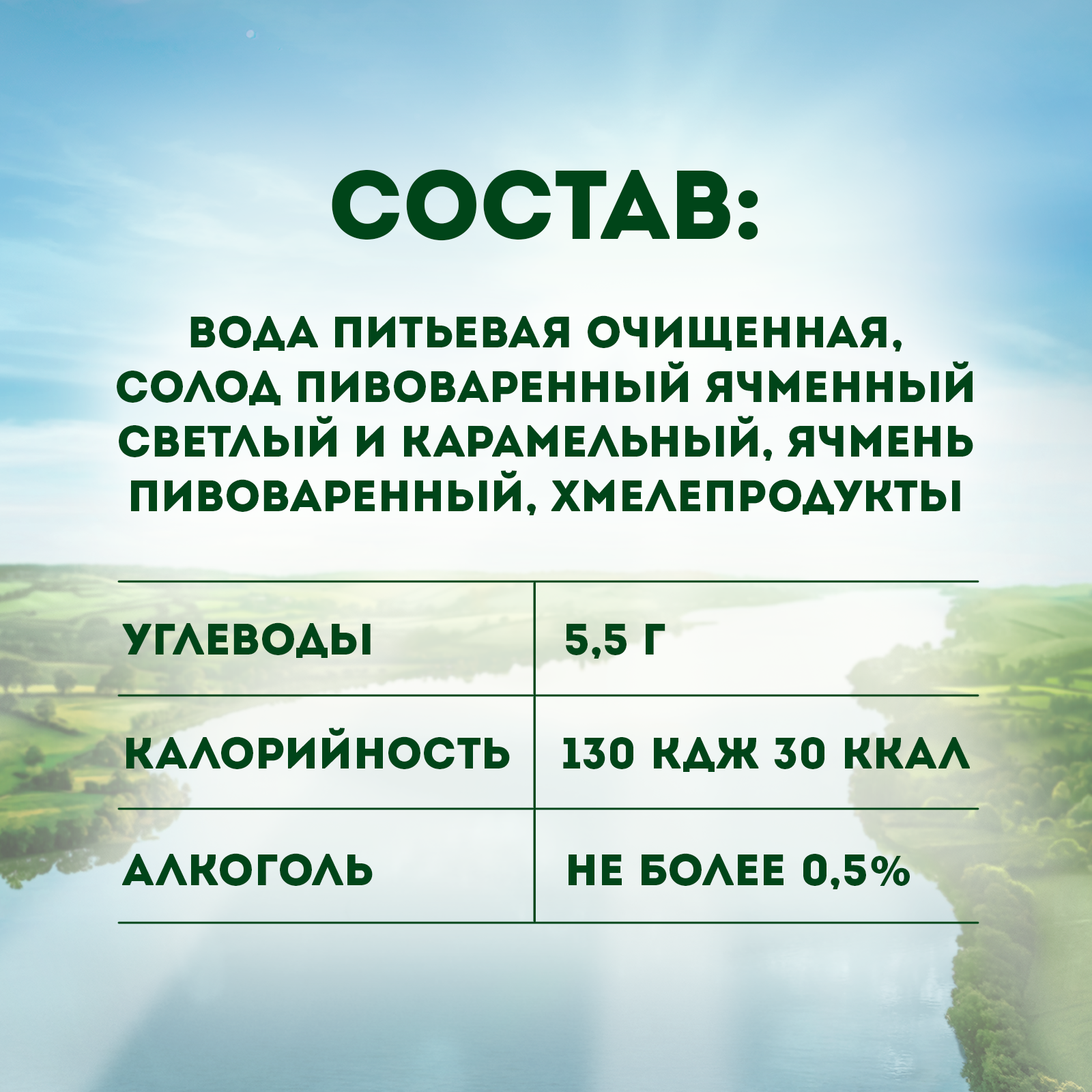 | Состав | Вода питьевая очищенная, солод пивоваренный ячменный светлый и карамельный, ячмень пивоваренный, хмелепродукты |