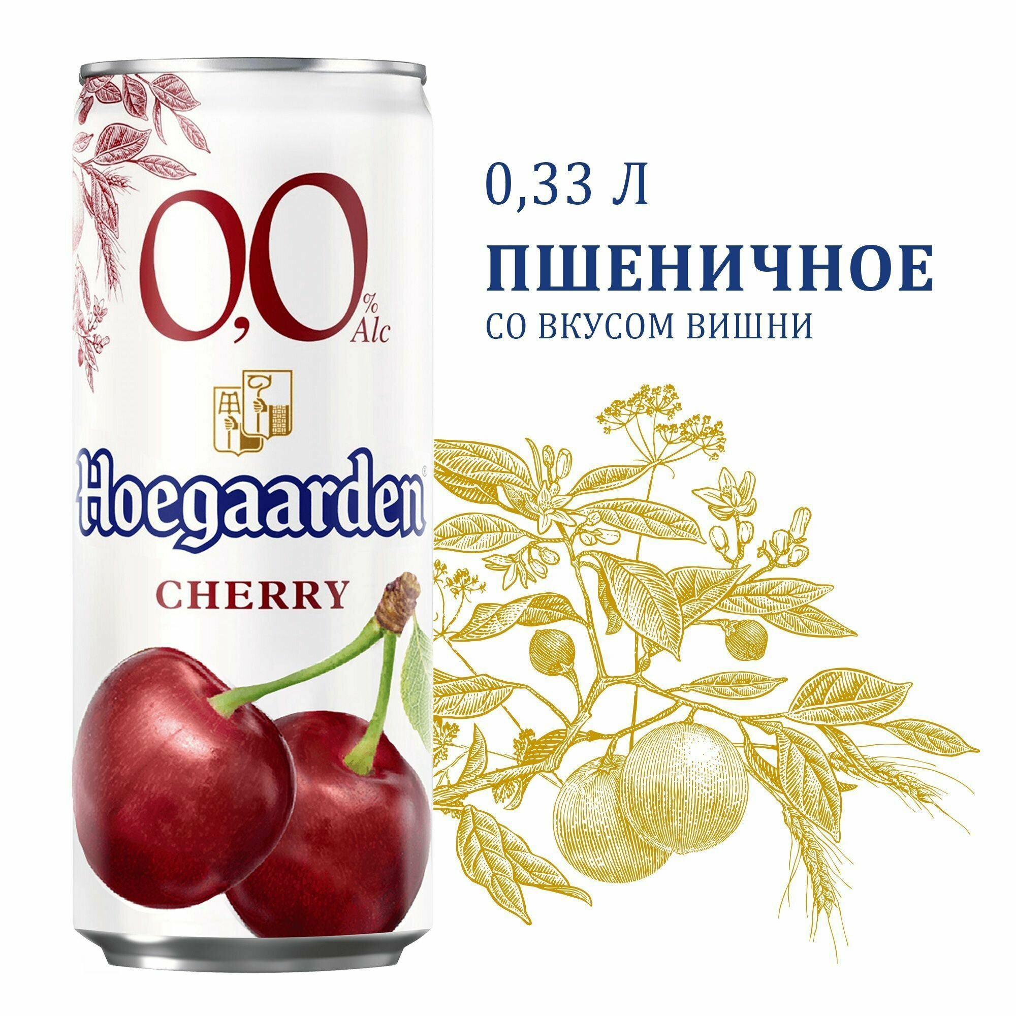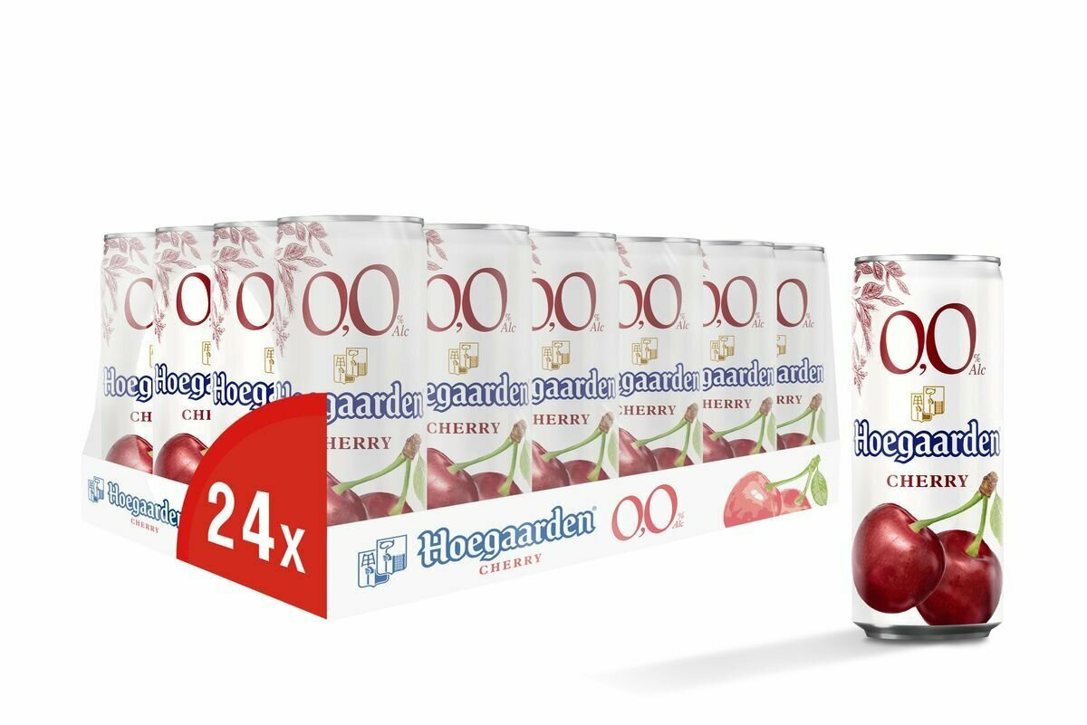 Безалкогольное пиво, Пивной напиток Hoegaarden (Хугарден) безалкогольный со вкусом вишни упаковка 24 шт. по 0,33 л. Россия